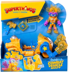 Ga op missie naar Kaboom City met de set SuperThings Kid Kazoom Combat. De verpakking bevat een gevechtsvoertuig Multy, een exclusieve figuur en accessoires voor avonturen vol actie. Ideaal voor kinderen die figuren verzamelen en hun eigen verhalen bedenken leuk vinden.