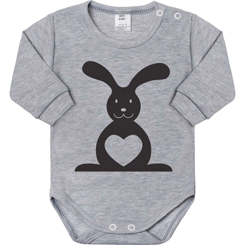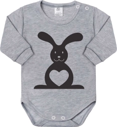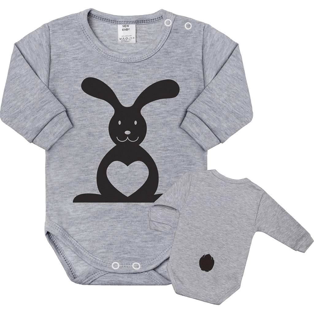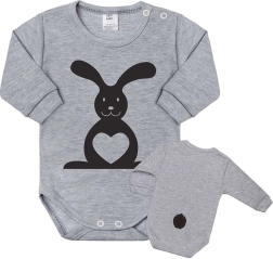 Deze grijze body van 100% katoen is ontworpen voor dagelijks comfort. De voorkant is versierd met een grote konijn met hartje, achterop staat een kleine print van een staartje. De zachte tricot en de sluiting op de schouder en in het kruis maken aankleden en verschonen eenvoudig.