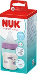 Praktische babyfles NUK Perfect Match met een inhoud van 150 ml biedt een temperatuurindicator voor veilig voeden, een zachte siliconen speen met orthodontische vorm en een antikrampjessysteem voor een natuurlijke melkstroom zonder lucht inslikken. Gemaakt van duurzaam en licht polypropyleen, BPA-vrij, geschikt vanaf de geboorte (maat S) voor moedermelk, water en thee.
