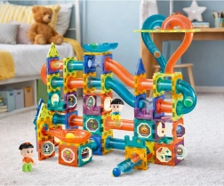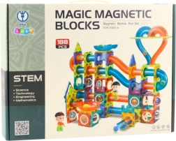 De MAGIC MAGNETIC BLOCKS bouwset combineert creatief spel en leren. Gekleurde, transparante onderdelen, buizen, bochten en glijstukken maken het mogelijk om originele knikkerbanen te bouwen die dankzij de magnetische verbindingen naar wens kunnen worden uitgebreid en omgebouwd. Het spel bevordert oog-handcoördinatie, probleemoplossend vermogen en teamwork.