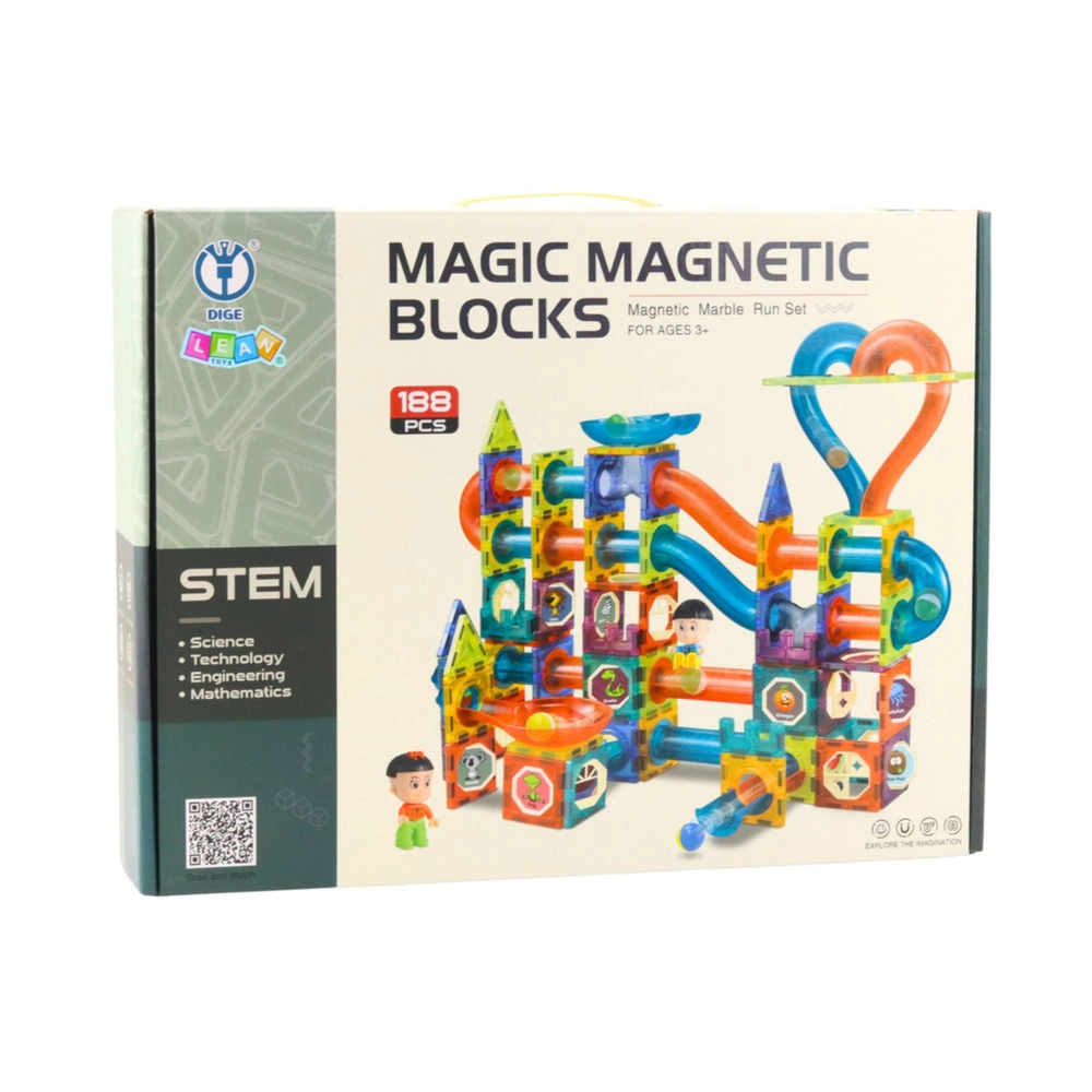 Ontdek de creatieve wereld met de magnetische bouwset met een knikkerbaan van 188 delen, die logisch denken, fijne motoriek en ruimtelijk inzicht stimuleert. Dankzij de sterke magneten en transparante, kleurrijke elementen bouwen kinderen eenvoudig meerlaagse constructies en dynamische knikkerbanen – ideaal voor plezier en leren voor kinderen vanaf 3 jaar.