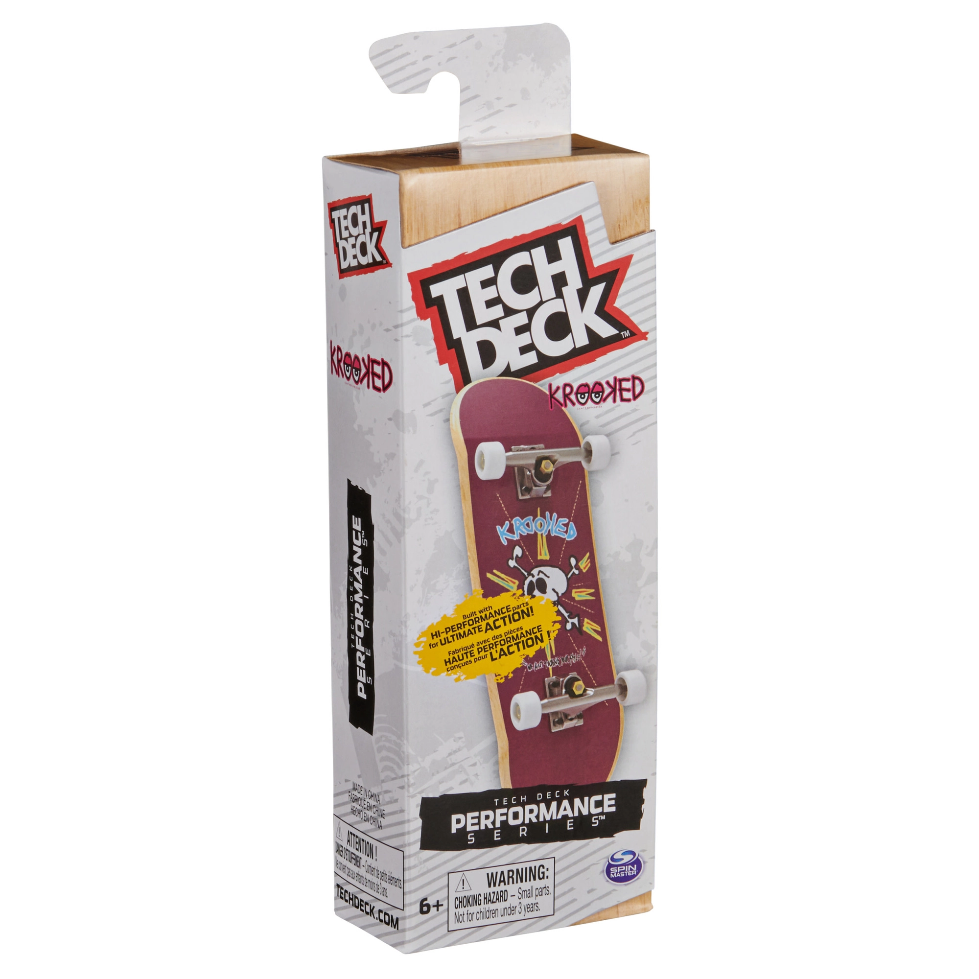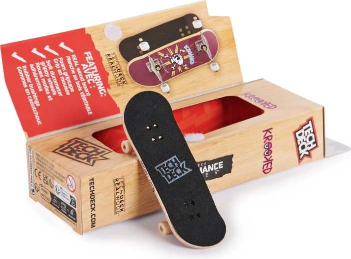 Ontdek de realistische fingerboard uit de Performance-lijn van Tech Deck met KROOKED-graphics. De houten deck, foam grip, rubberen bushings en zachtere, gripvolle wielen zorgen voor betere controle, precisie en een rijgevoel als op een echte skateboard – ideaal om trucs met je vingers te leren en uit te voeren thuis en onderweg.
