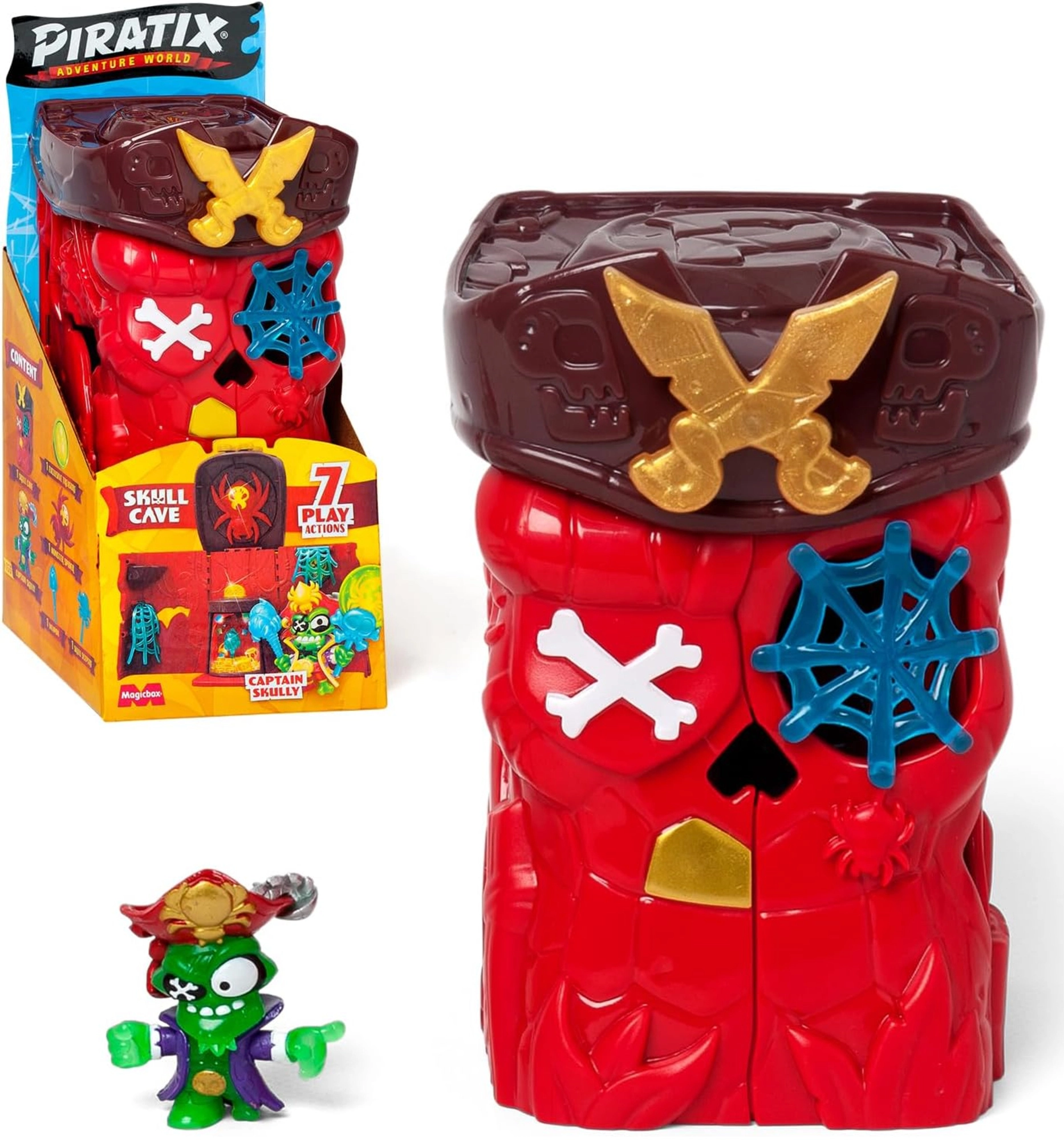 Ontdek piratenavontuur met de set PIRATIX Secret Skull Cave van MagicBox Toys. Een mysterieuze grot vol uitdagingen, raadsels en schatten verbergt een exclusief figuurtje en accessoires voor creatief spel. Ideaal voor kleine ontdekkers die houden van piraterij, actie en verzamelbare figuren.