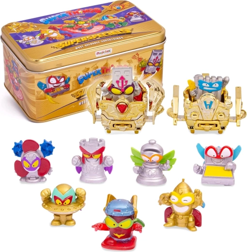 De exclusieve SuperThings Superspecials set biedt een luxe gouden metalen blik waarin je je schatten uit de wereld van Kaboom City veilig kunt bewaren. Elk figuurtje is een tot leven gekomen gebruiksvoorwerp – of het nu een dappere superheld is of een sluwe schurk – ideaal om mee te spelen en je collectie uit te breiden.