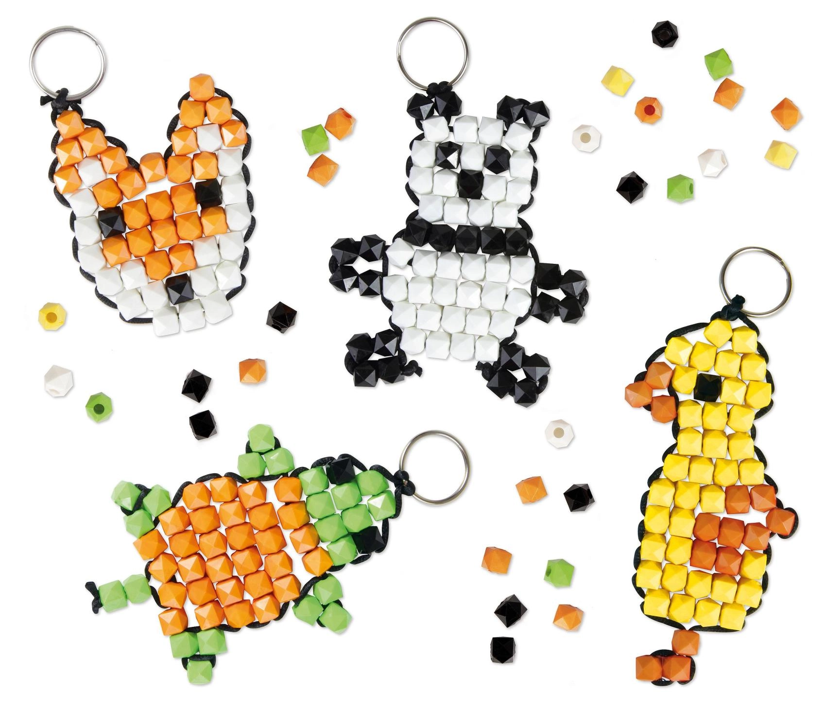 Maak een vos, panda, schildpad of eendje. Aansprekende kleuren en een pixel-look maken van de hangers een stijlvolle accessoire.
