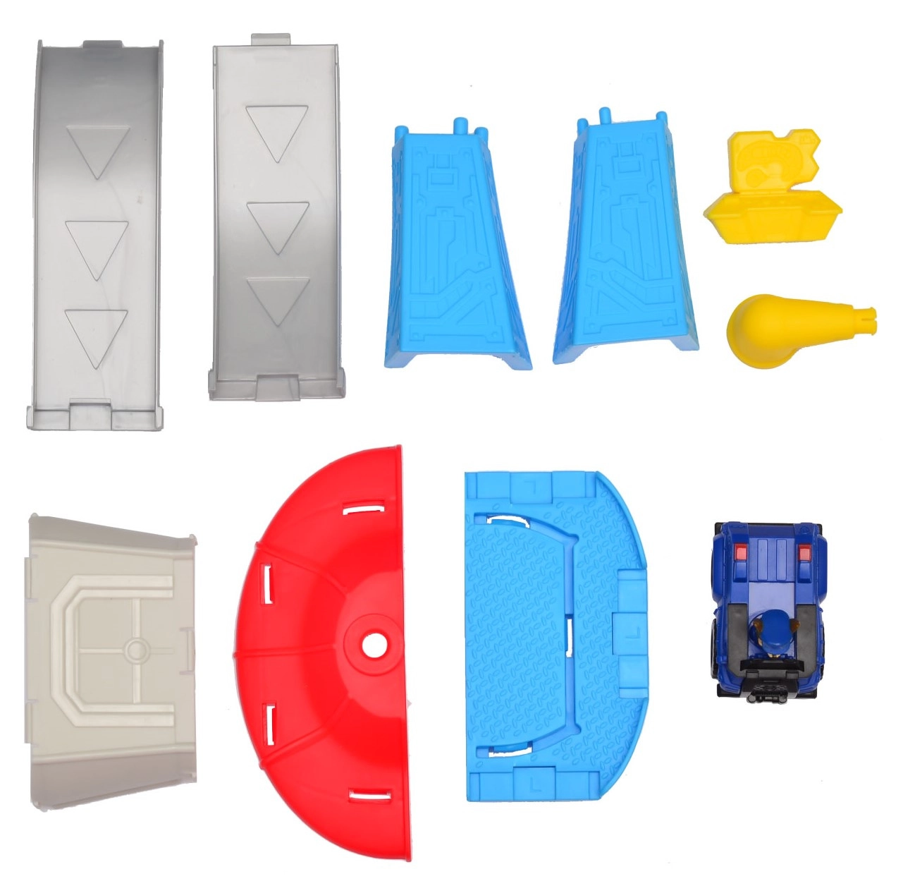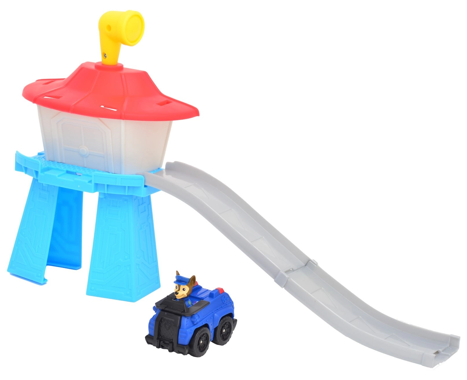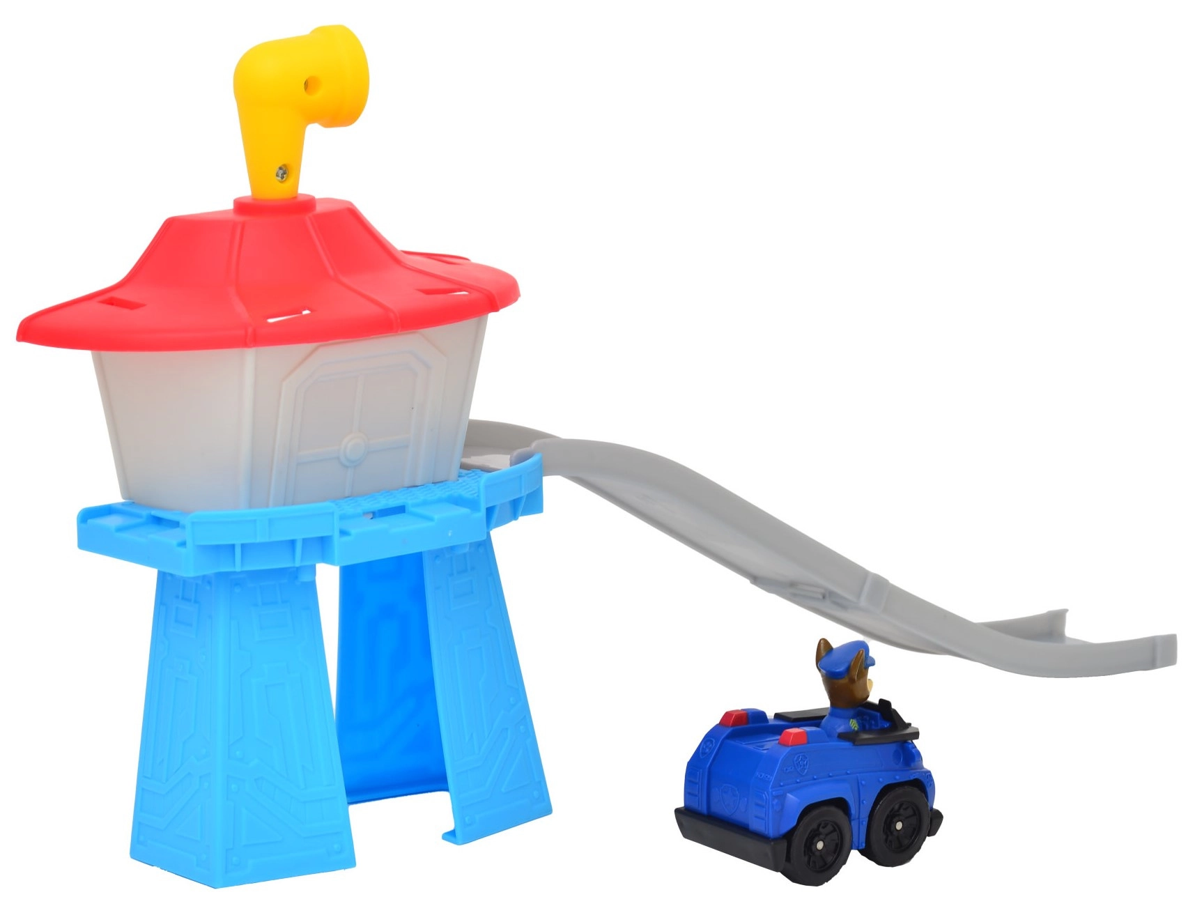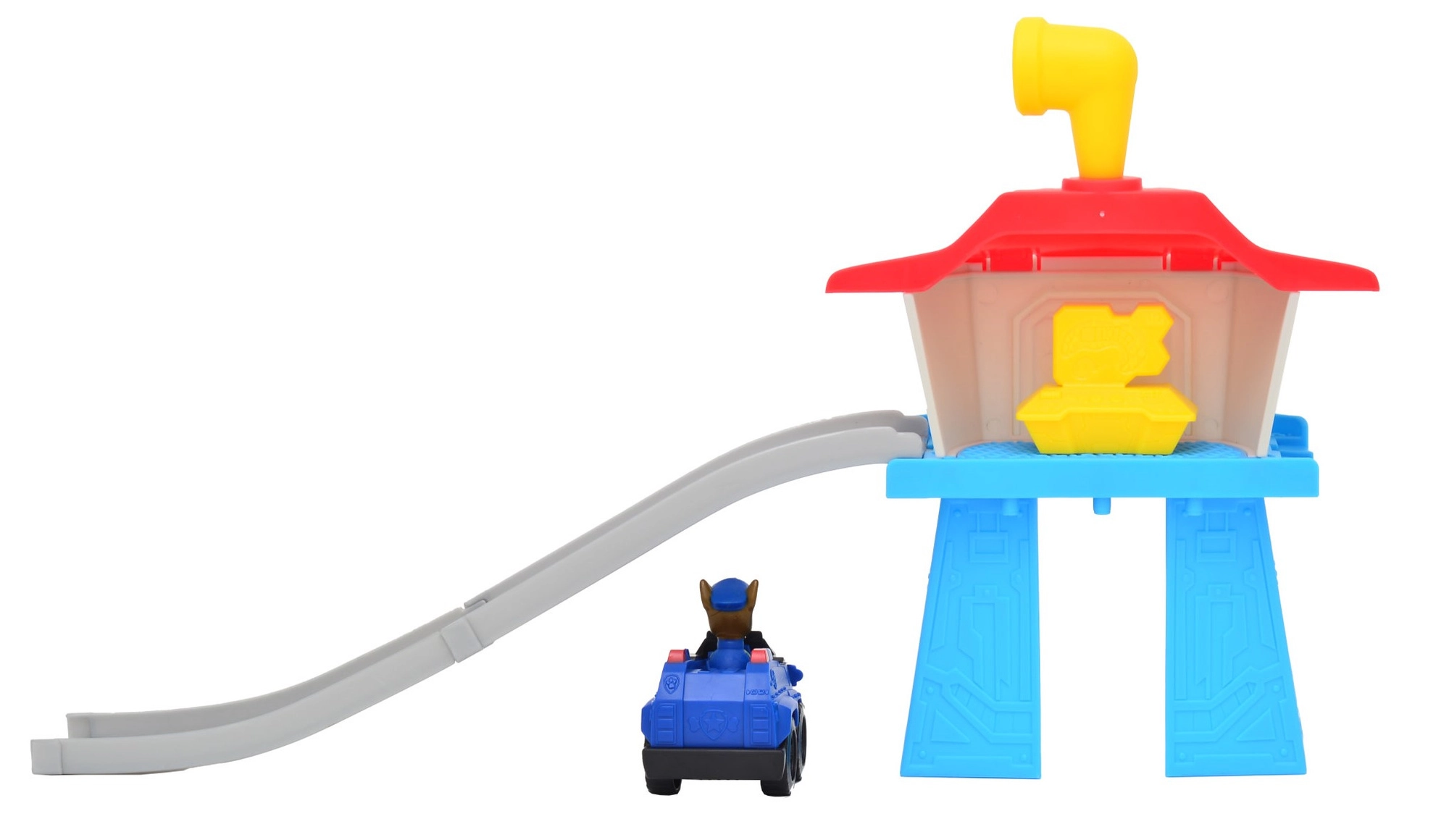 De afzonderlijke componenten klikken eenvoudig in elkaar. Inclusief toren, ramp en CHASE-voertuig voor direct speelplezier.