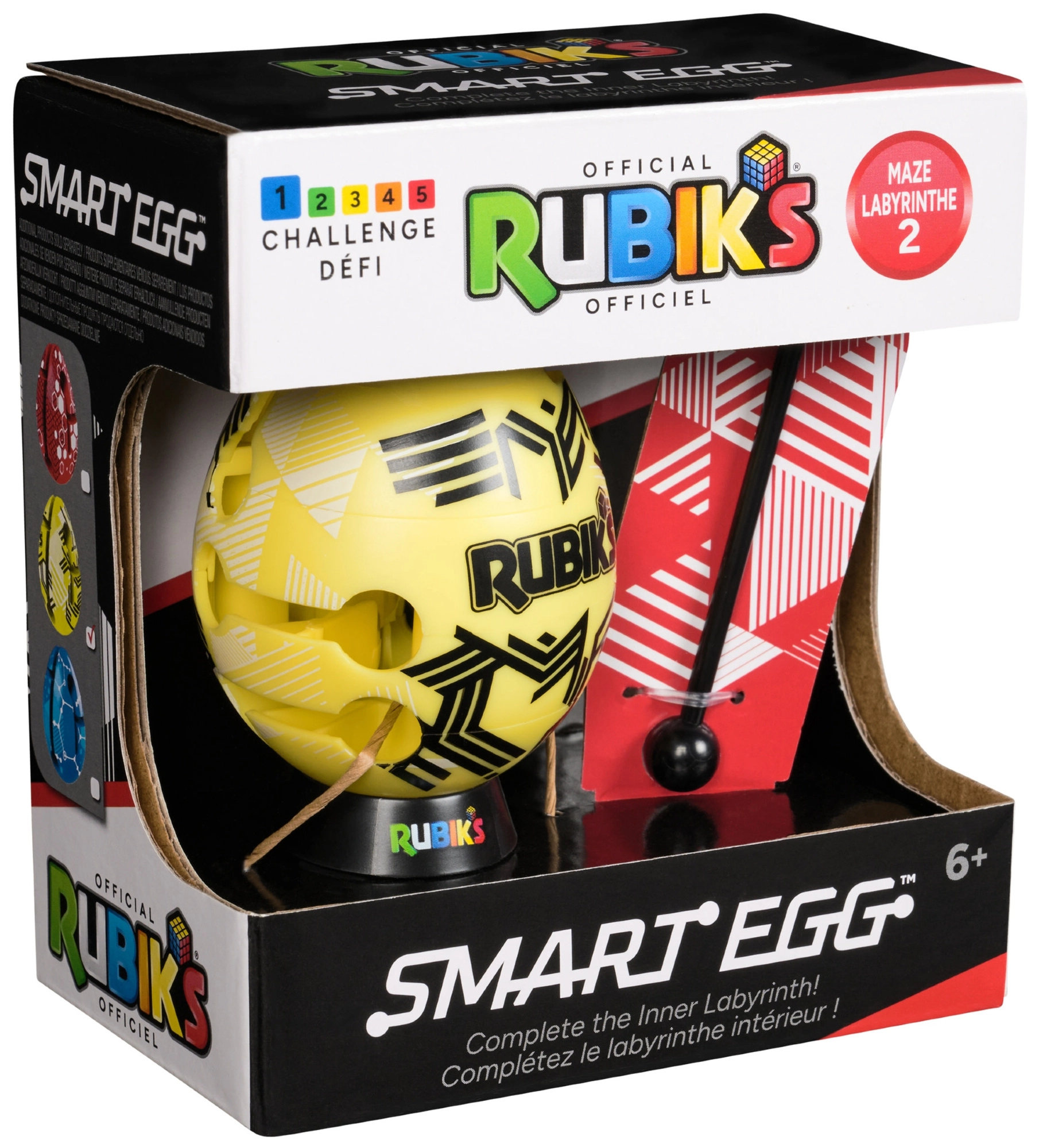 Het gele Rubik’s Smart Egg is een zakformaatpuzzel met een origineel doolhof, waarin je het meegeleverde stokje van ingang tot uitgang navigeert. Elke beweging vereist precies draaien en schuiven, goed voor talloze combinaties en steeds nieuwe uitdagingen.