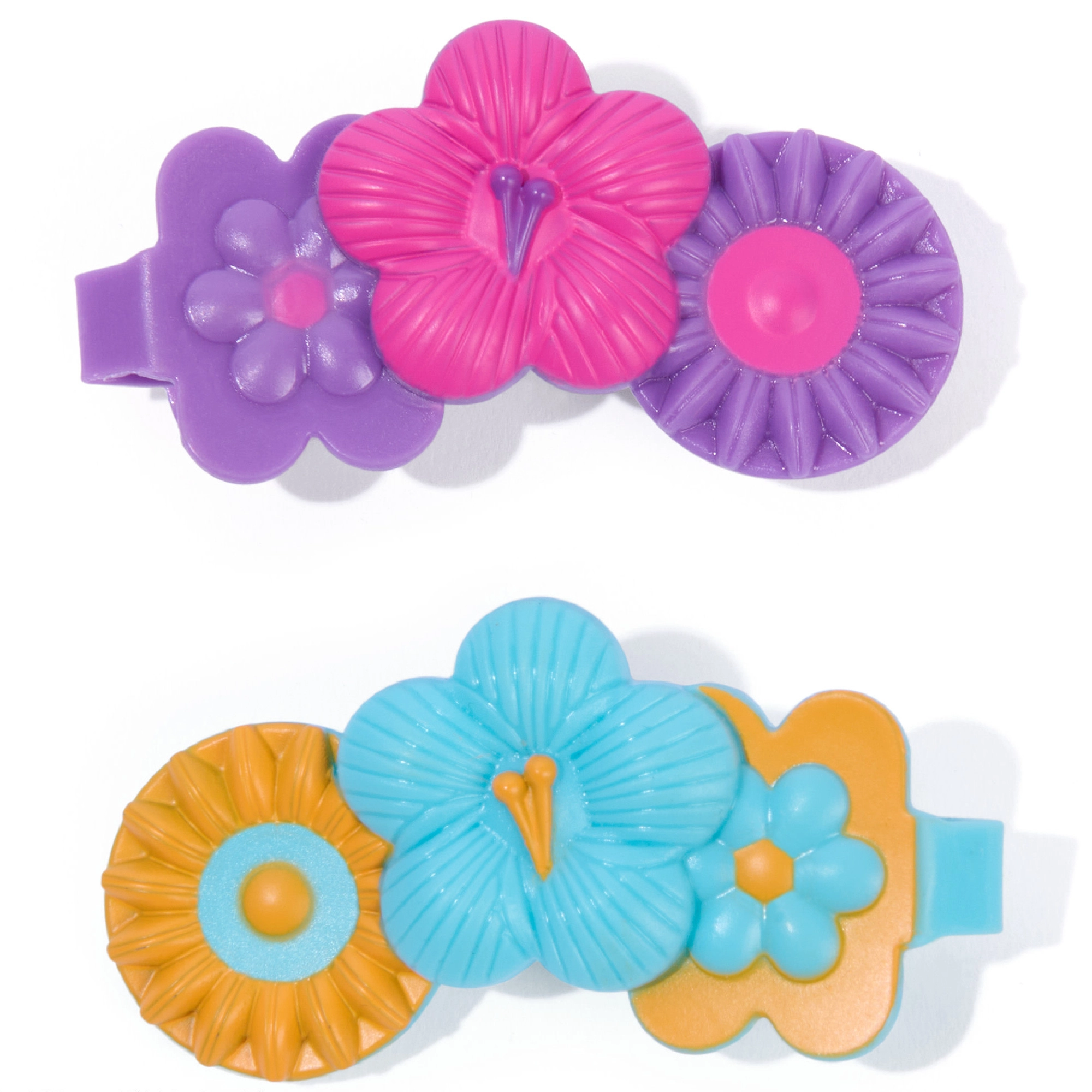 Het zachte, volle haar kan worden gekamd en versierd met de meegeleverde bloemenhaarklemmen – ideaal voor creatieve kapsels en het ontwikkelen van fijne motoriek.