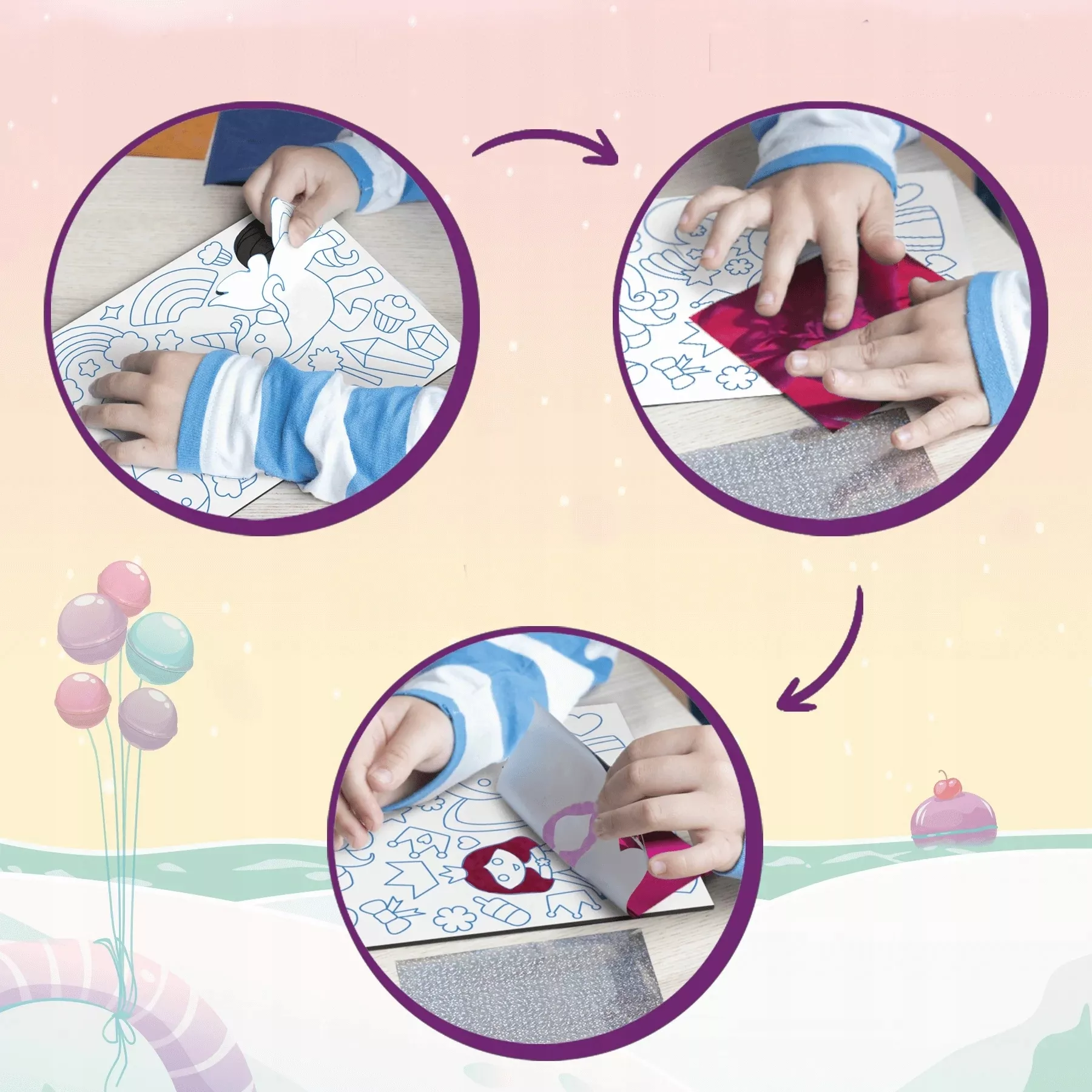 - Schuimafbeeldingen, gekleurde folies, geïllustreerde stapsgewijze handleiding