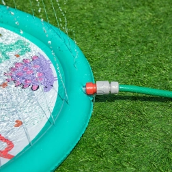Na aansluiting op de tuinslang spuit water uit de openingen rondom en ontstaat er een verfrissende fontein. De hoogte van de waterstraal stel je eenvoudig in met de waterdruk.