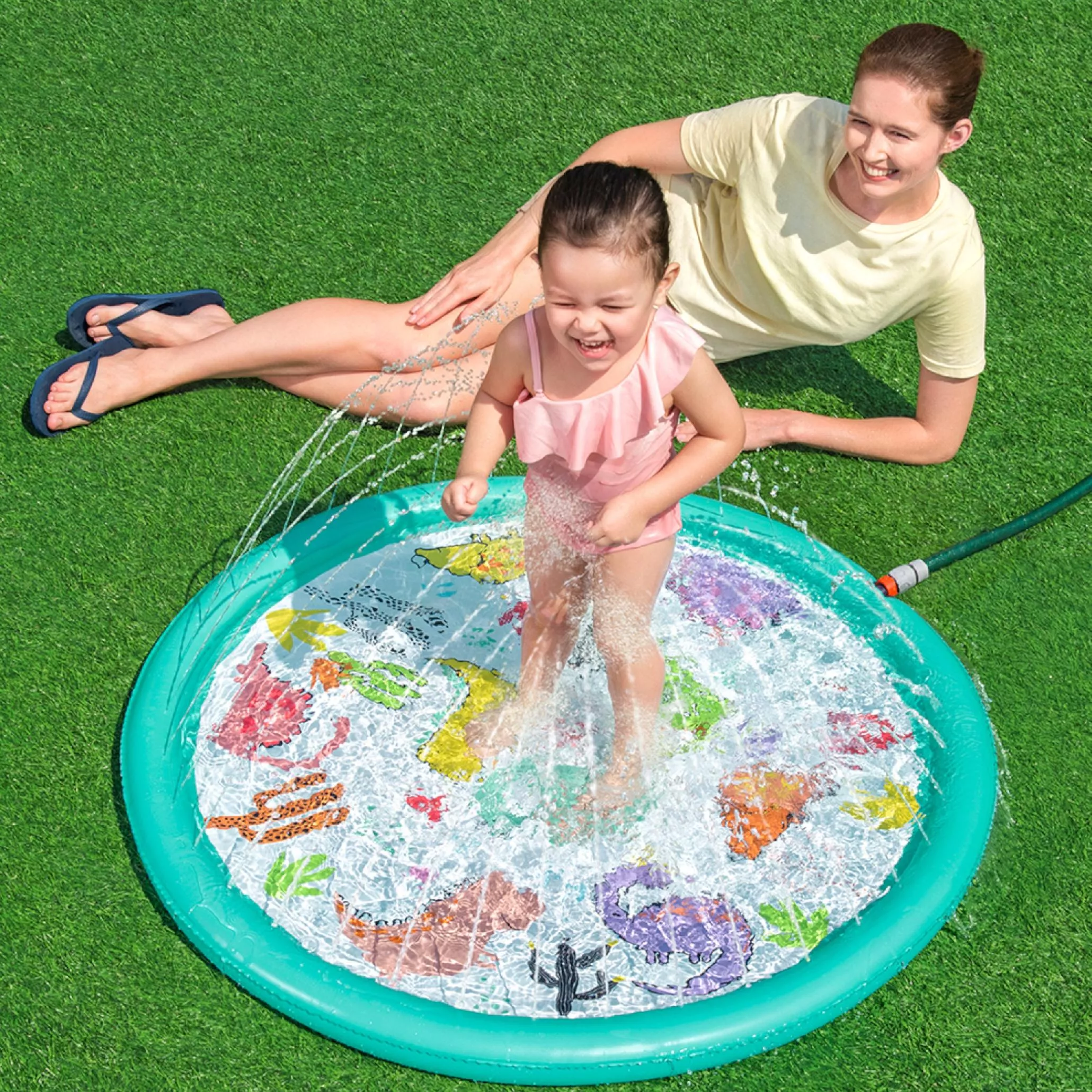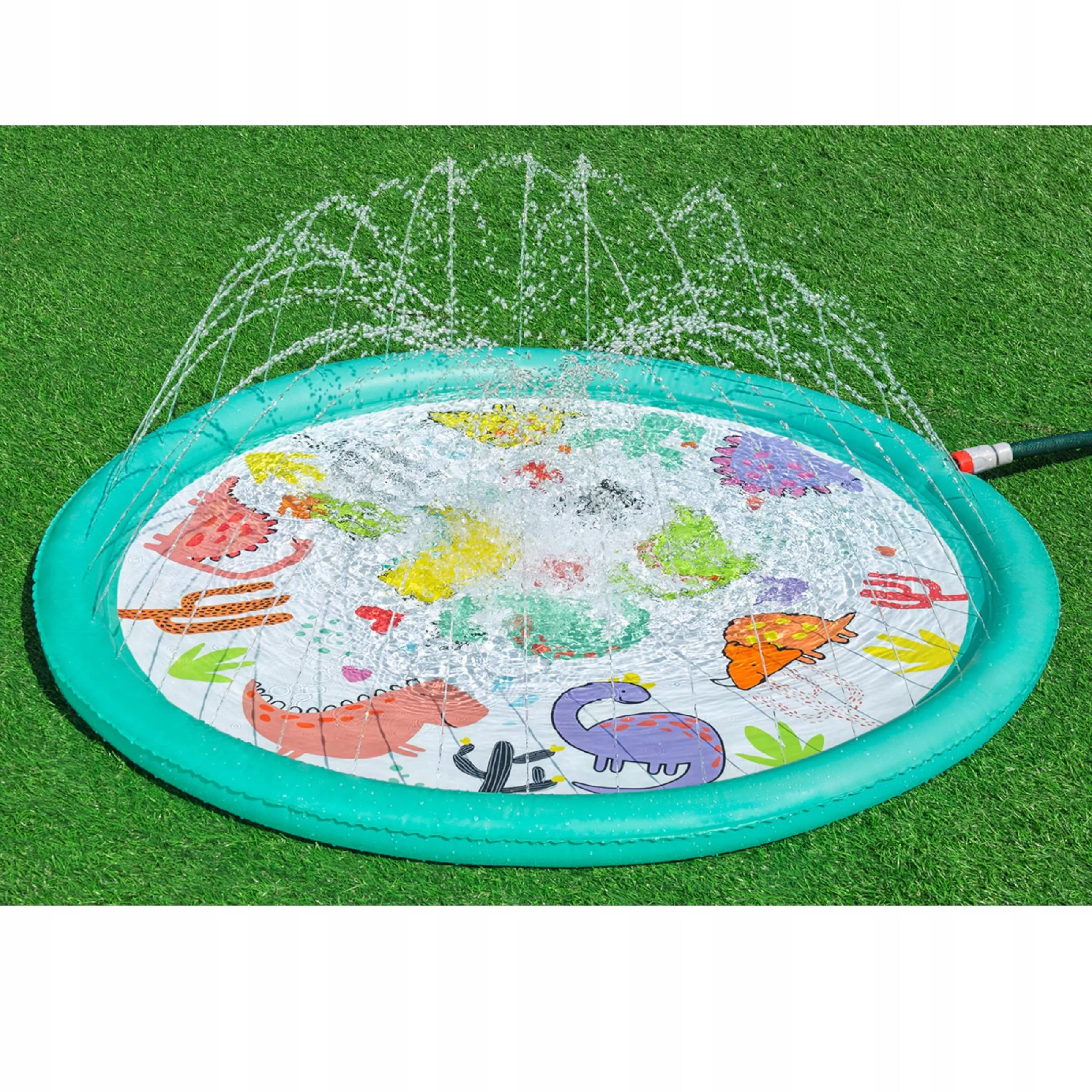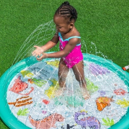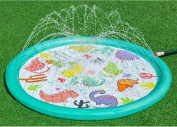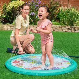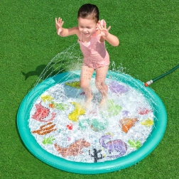 Deze opblaasbare sproeimat brengt kinderen veel plezier, verkoeling en actief buitenspelen op warme dagen. Sluit hem eenvoudig aan op de slang, stel de waterdruk in en de sproeiers rondom creëren een zachte waterfontein met verstelbare straalhoogte. Het ondiepe oppervlak is ideaal voor veilig ravotten en spetteren.