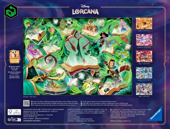 Ontdek een gedetailleerde illustratie uit de wereld van DISNEY LORCANA in de editie Glimmers of the Realm: Smaragd. RAVENSBURGER puzzels blinken uit door topkwaliteit drukwerk en precisiesnede, waardoor de stukjes perfect in elkaar passen en de puzzel zijn vorm behoudt. Het eindresultaat van ongeveer 70 × 50 cm leent zich uitstekend om in te lijsten.