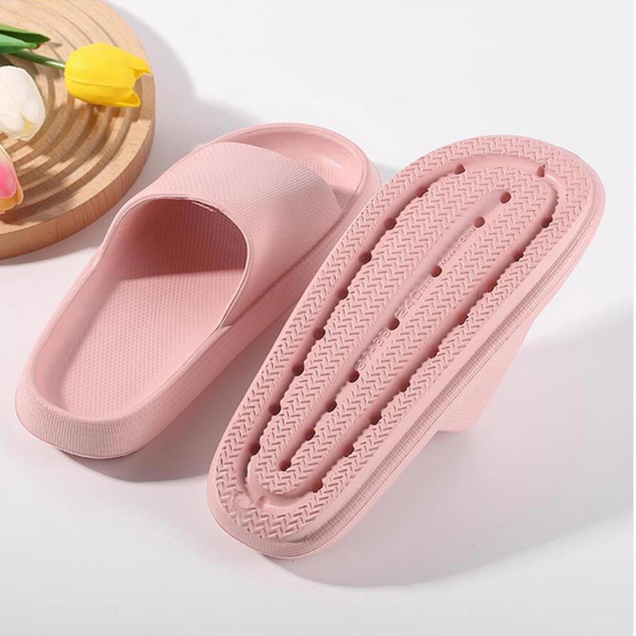 Geniet van comfort bij elke stap. Deze damesschuimslippers met een zachte, dik gewatteerde zool en een brede band bieden lichtheid, steun en een veilige tred op zowel natte als droge oppervlakken. Perfect voor bij het zwembad, op het strand, in de douche en thuis.