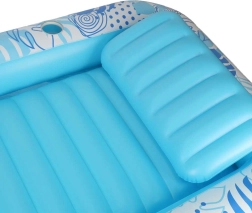 Creëer je eigen privé relaxzone op het water. Het opblaasbare ligbed met afneembaar kussen in blauw-wit design combineert comfort, stabiliteit en stijl. Het is snel op te blazen met een compressor of elektrische pomp en behoudt dankzij meerdere luchtkamers zijn vorm, ook bij langdurig gebruik.