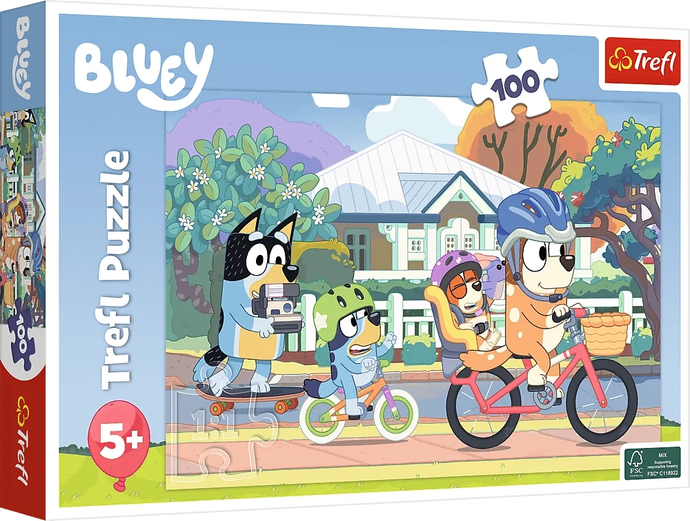 Geniet van gezamenlijke momenten met kinderen tijdens het leggen van de favoriete figuur uit de serie BLUEY. De kleurrijke puzzel met het thema “Gelukkige dag” bevat 100 stukjes en meet na het leggen ca. 41 × 27,5 cm – ideaal voor het ontwikkelen van geduld, concentratie en fijne motoriek.