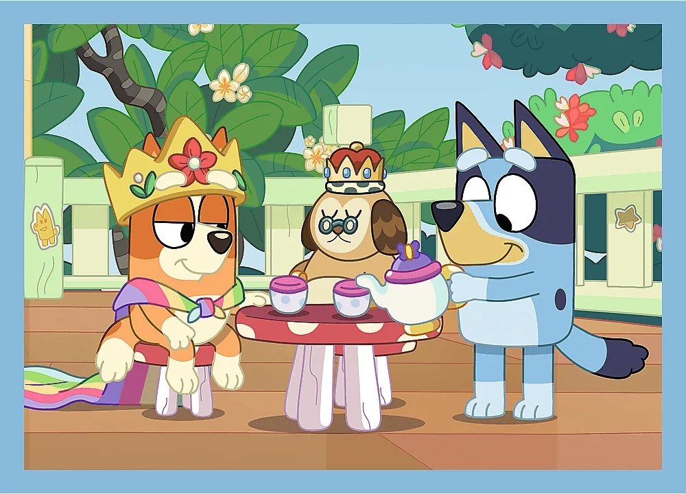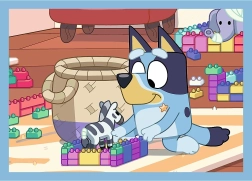 Ontdek de vrolijke wereld van BLUEY met deze set van vier puzzels in één doos. Dankzij het verschillende aantal stukjes is hij ideaal voor de stapsgewijze verbetering van de vaardigheden van kinderen en garandeert hij plezier voor het hele gezin. De voltooide afbeeldingen hebben een praktisch formaat dat ook op een kleinere tafel gemakkelijk te leggen is.