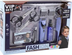 In de verpakking vind je alles voor creatief rollenspel: trimmer, 2 scharen, scheermes, 2 opzetstukken, 2 potjes voor “cosmetica” en een kam.