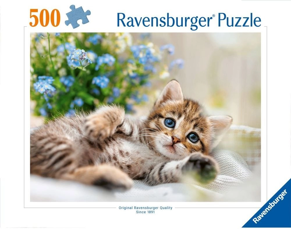 Ontdek een charmante puzzel met het motief van een knuffelig kitten, die zowel dierenliefhebbers als enthousiaste puzzelaars zal bekoren. Met 500 stukjes is hij ideaal voor een ontspannen middag, het trainen van concentratie en ontladen na een drukke dag. De hoogwaardige druk en precieze uitsnijdingen, kenmerkend voor het merk RAVENSBURGER, zorgen ervoor dat elk stukje precies op zijn plek valt.