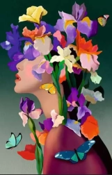 - Stijlvol motief: Bloemenhoofd met irissen voor moderne decoratie