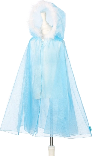 Betover een kleine prinses met deze lichte, glinsterende mantel in ijzig blauw. De mantel van zachte tule in twee lagen heeft een capuchon met witte bont en een comfortabele sluiting bij de hals. Perfect als aanvulling op een kostuum van de sneeuwkoningin of ijsprinses en ideaal voor carnaval, feestjes en spelen thuis. Fijne glans, twee lagen tule, capuchon met bont en makkelijke sluiting zorgen voor een magische look en draagcomfort.