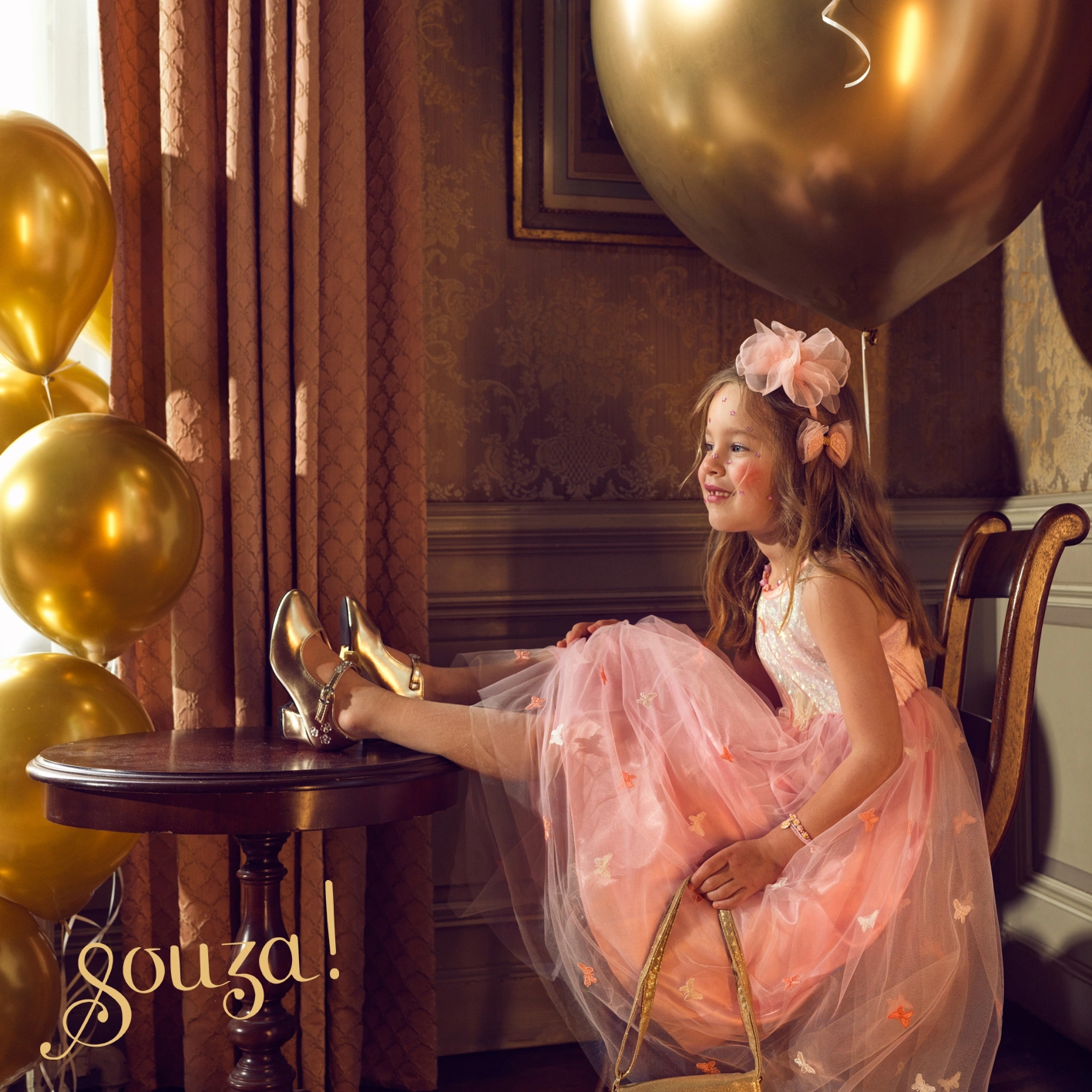 De prinsessenjurk Elise van het merk Souza tovert bij elke gelegenheid een glimlach tevoorschijn. De lichte en aangename stof zorgt voor comfort de hele dag, terwijl de tule rok met subtiele vlinders de jurk een magische touch geeft.