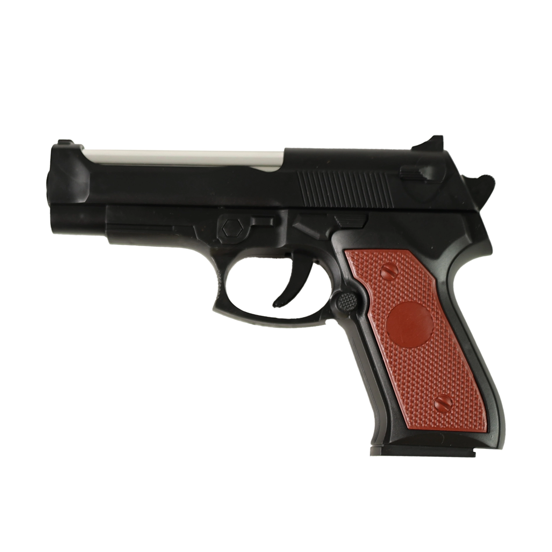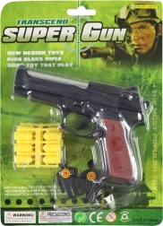 Dit plastic pistool voor rubberen kogels is een perfecte keuze voor alle jonge liefhebbers van schietspelletjes. Dankzij de zachte rubberen kogels is het spel veilig en tegelijk boeiend. De set bevat ook twee staande doelen in de vorm van figuurtjes, zodat je meteen je precisie kunt trainen en leuke wedstrijden kunt organiseren.