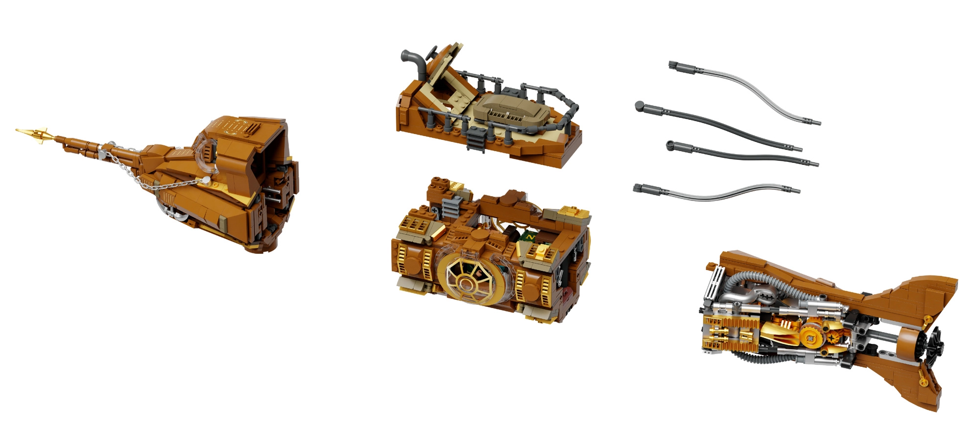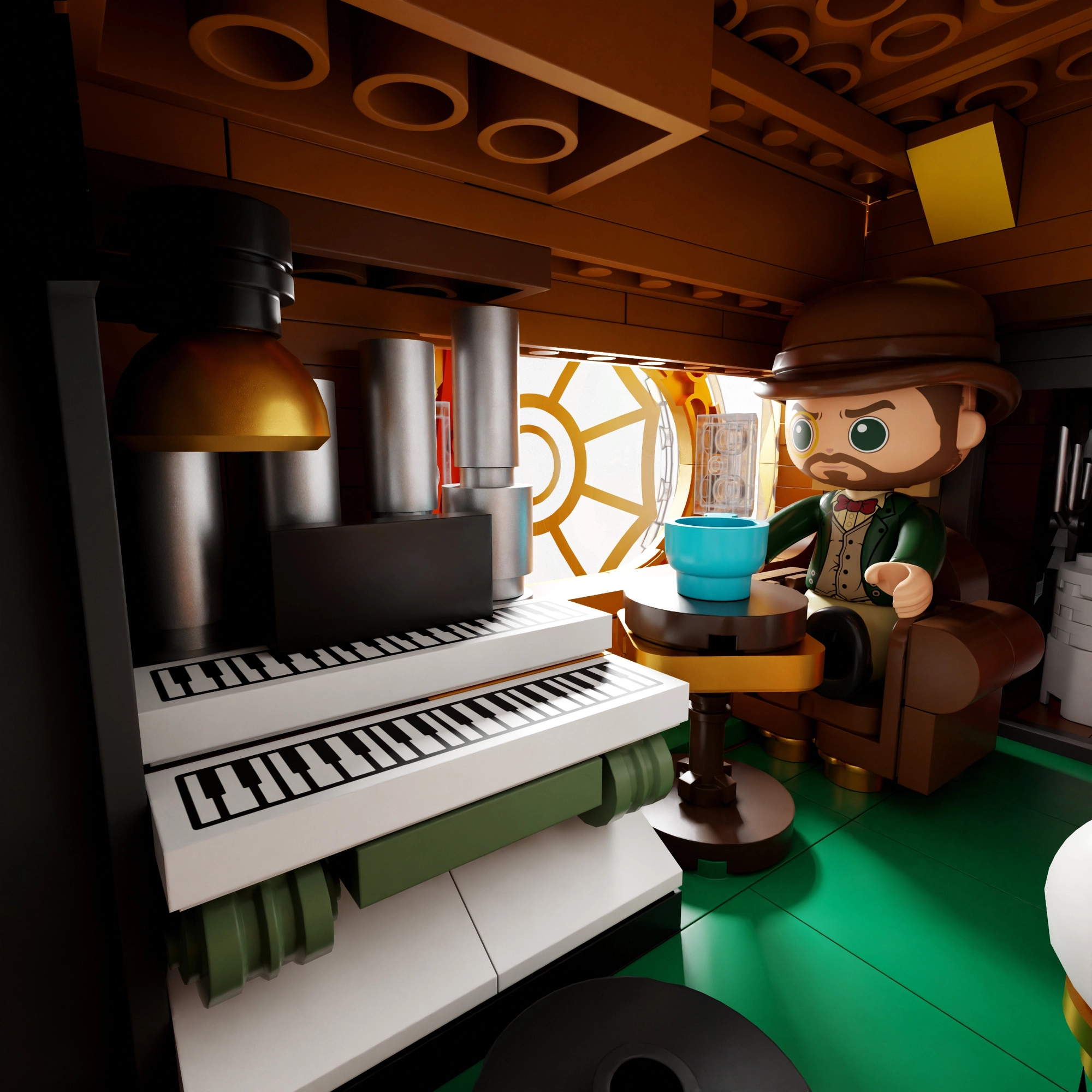 De romp is verdeeld in cockpit, salon en machinekamer. Gemakkelijke toegang tot het interieur verhoogt de speelbaarheid en maakt het mogelijk de details van de steampunk Nautilus te ontdekken.