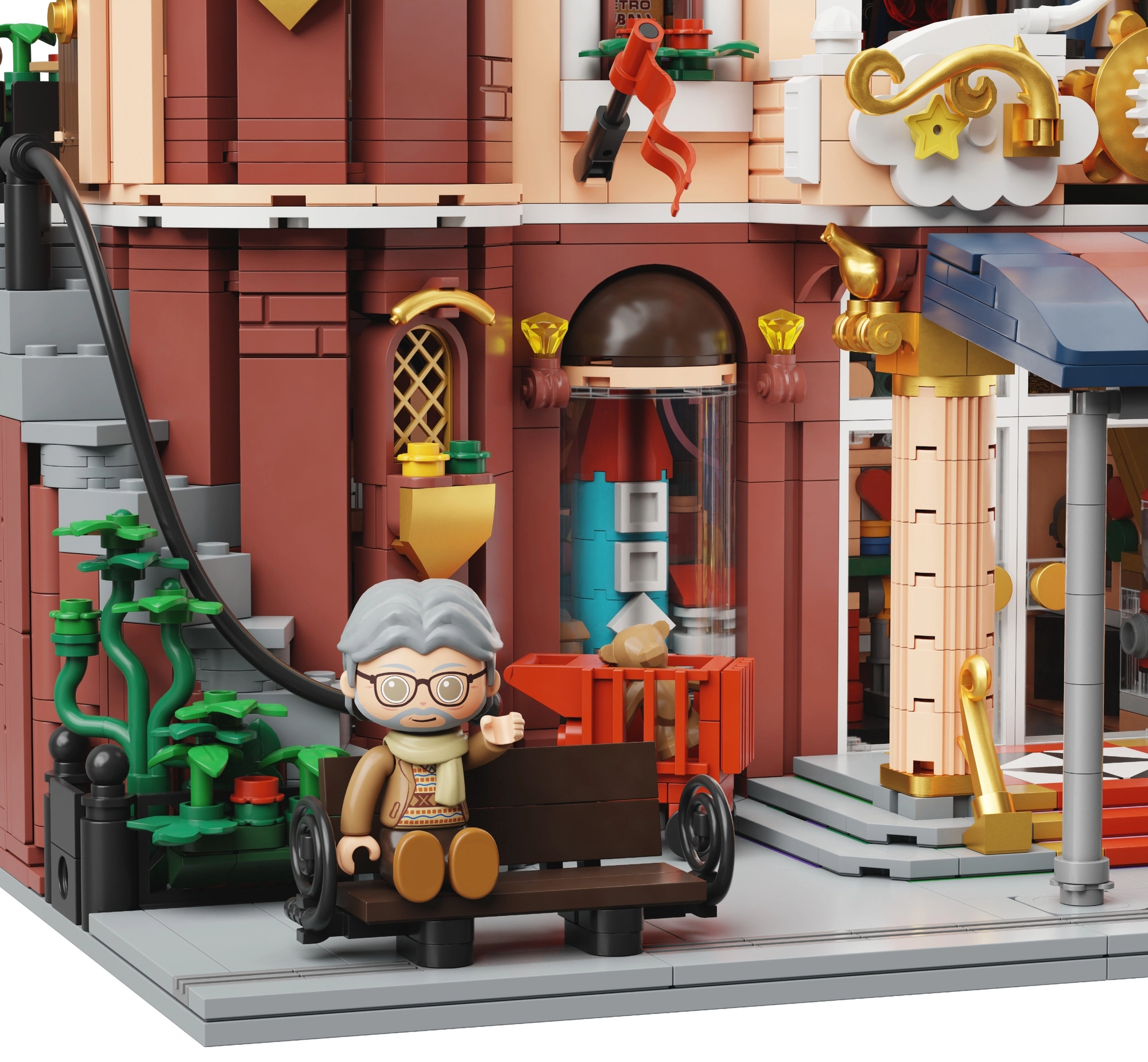 Deze unieke set in retrostijl combineert prachtige architectuur met doordachte functies voor zowel spelen als tentoonstellen. De crèmekleurig-rode gevel, decoratieve torentjes en realistische etalages zorgen voor een authentieke sfeer van een historische speelgoedwinkel. De bouwset is ideaal voor verzamelaars en creatieve bouwers die op zoek zijn naar rijke details en een modulaire constructie.