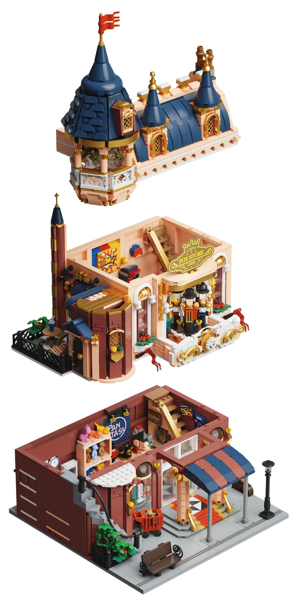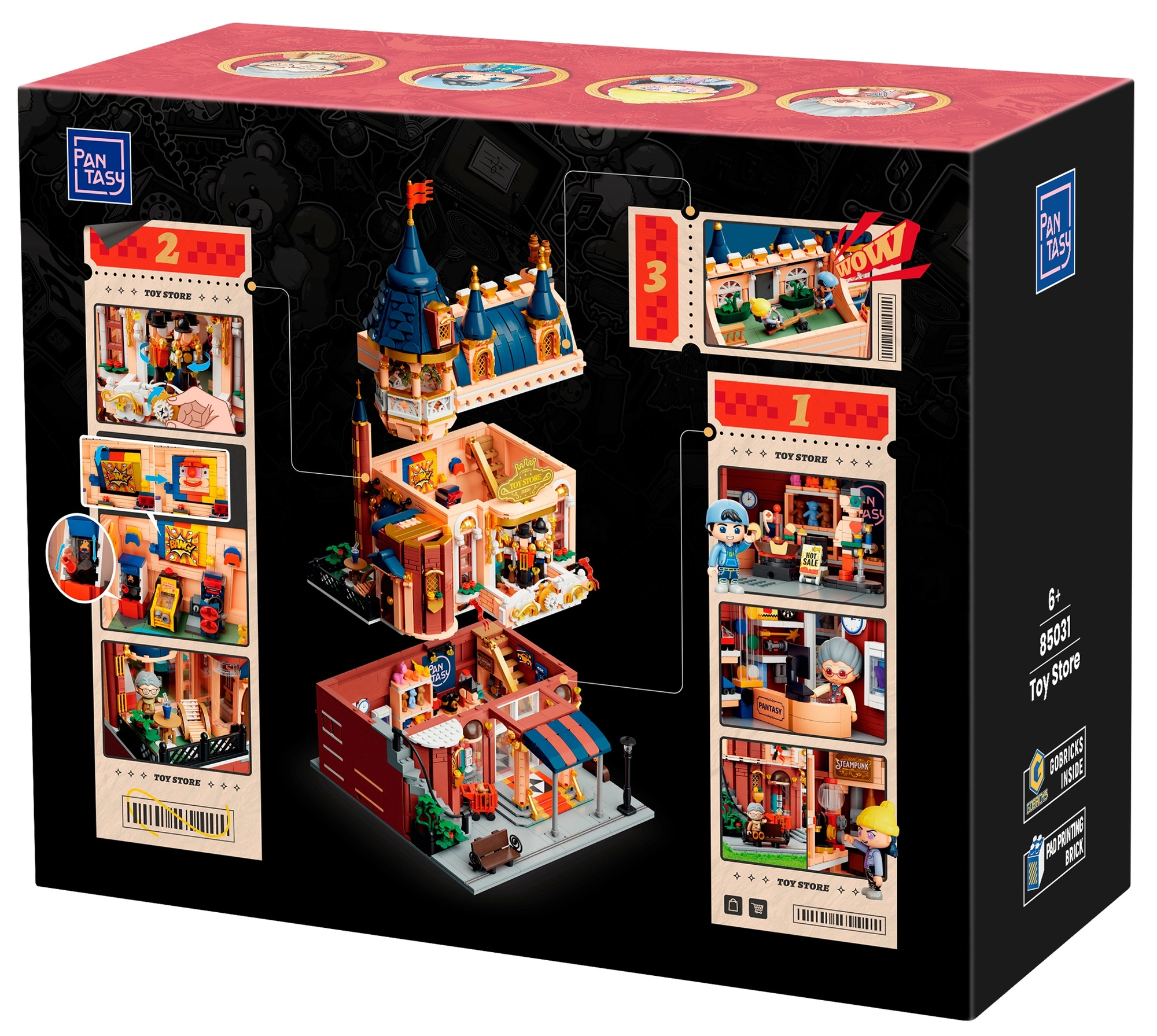 Het gebouw bestaat uit drie eenvoudig te scheiden verdiepingen: begane grond – speelgoedwinkel met miniatuurmodellen en displays, 1e verdieping – retro speelzaal met automaten en bordspellen, en een dakterras met prieel om te ontspannen. Vier minifiguren brengen dagelijkse scènes tot leven – verkoper, klanten en kinderen.