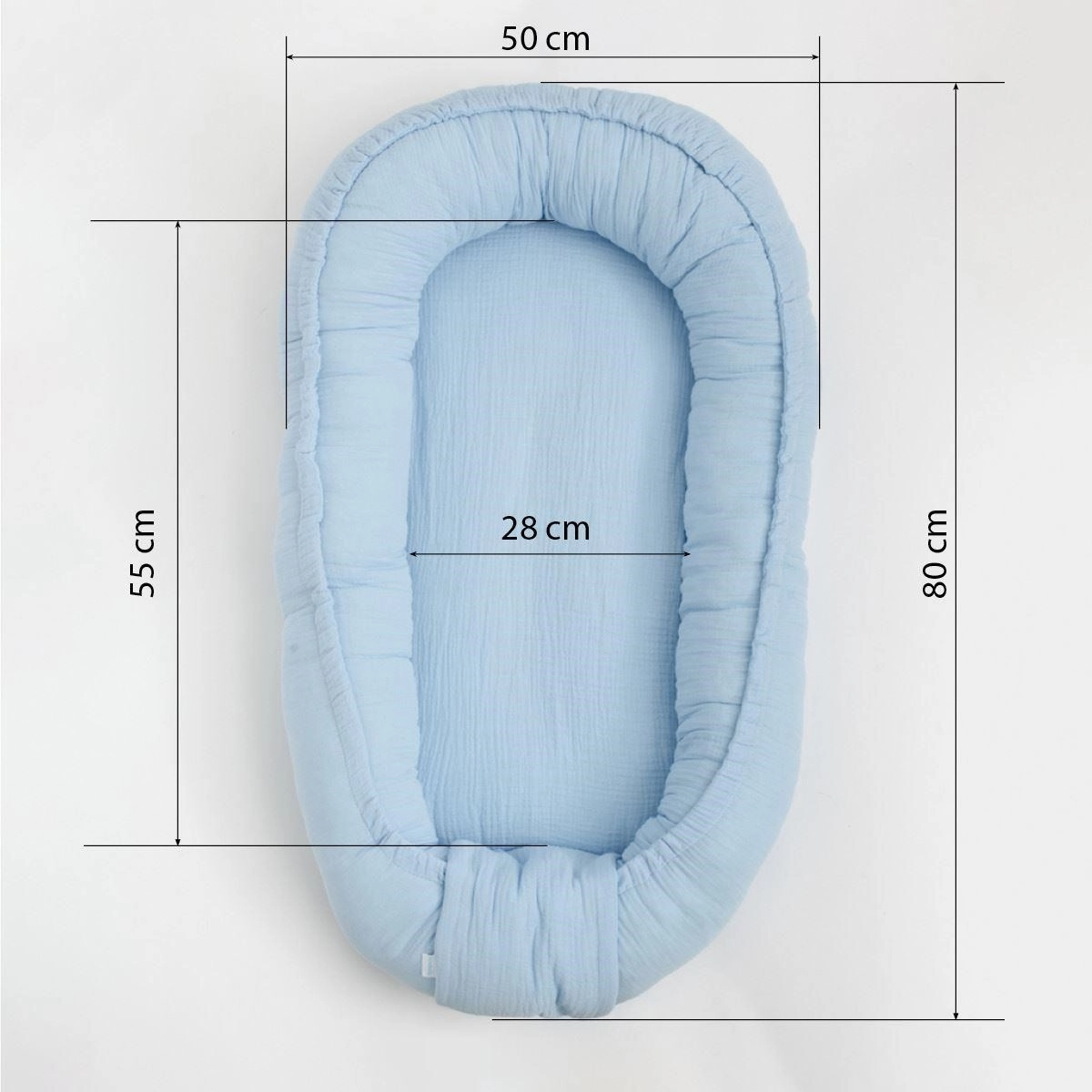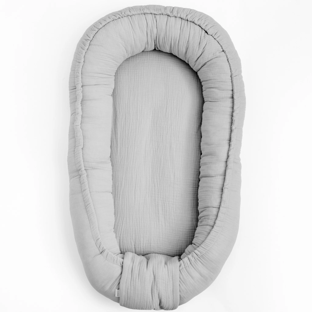 Het mousseline babynestje New Baby is gemaakt van de zachtste katoenen garens, die je baby maximaal comfort en een gevoel van geborgenheid bieden. Je verplaatst het eenvoudig naar het ledikant, de bank, op de vloer of in de kinderwagen – zo kan je kindje slapen, rusten en de omgeving bekijken in zijn vertrouwde plekje.