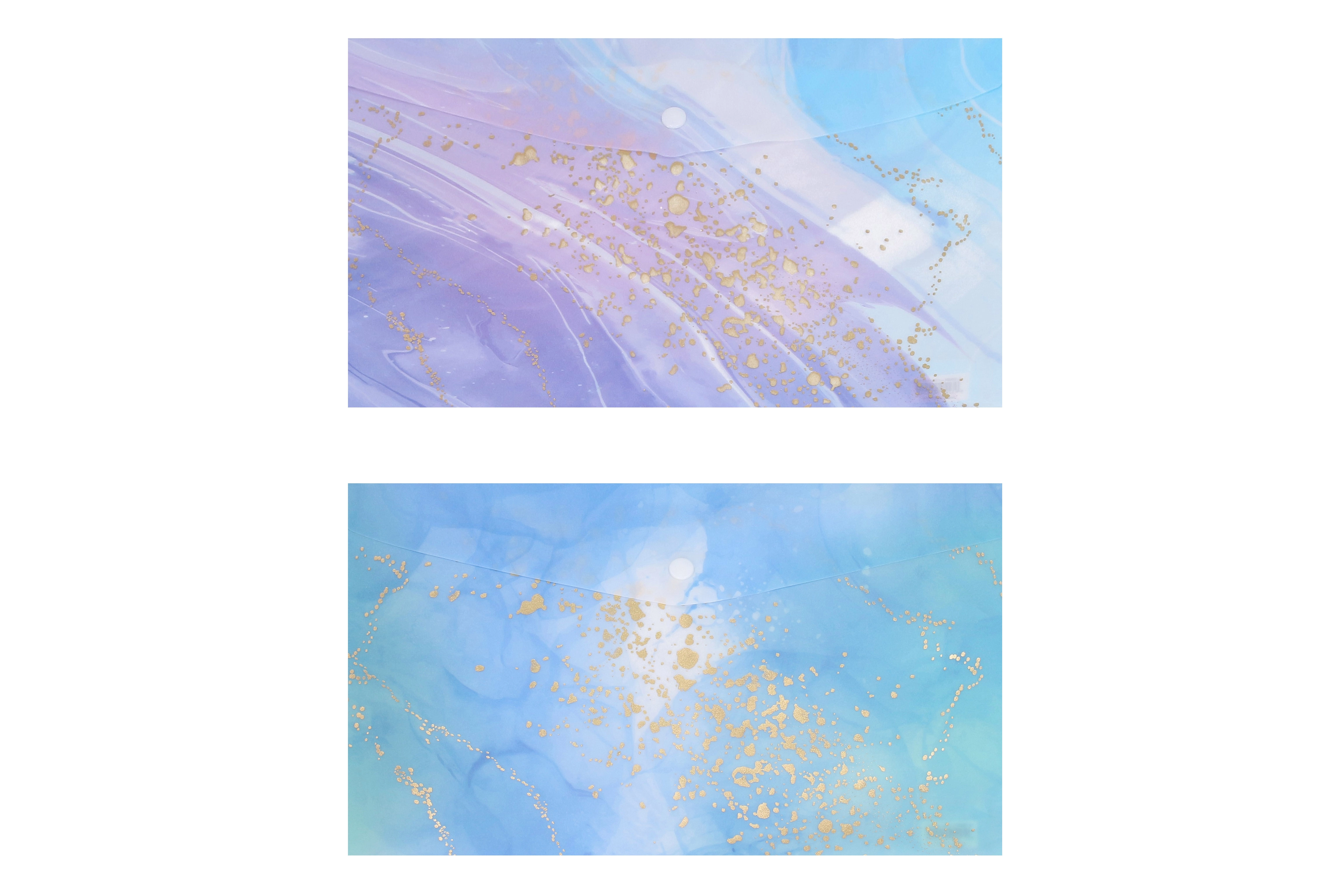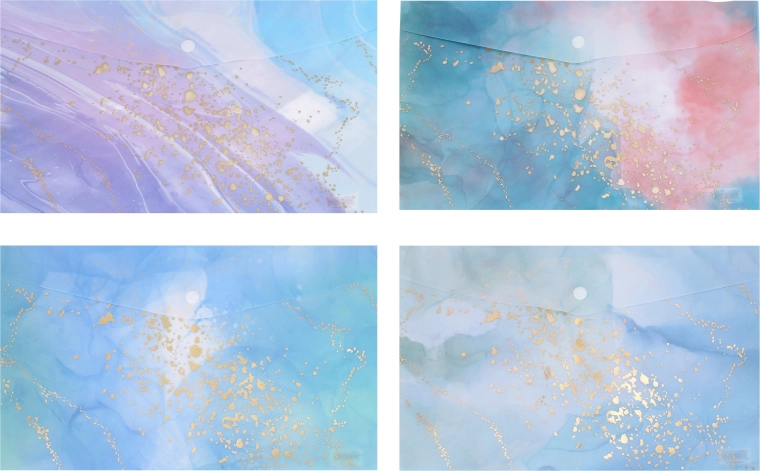 Pastelblauwe en paarse tinten met gouden accenten geven je documenten een elegante look en helpen mappen op stijl te onderscheiden.
