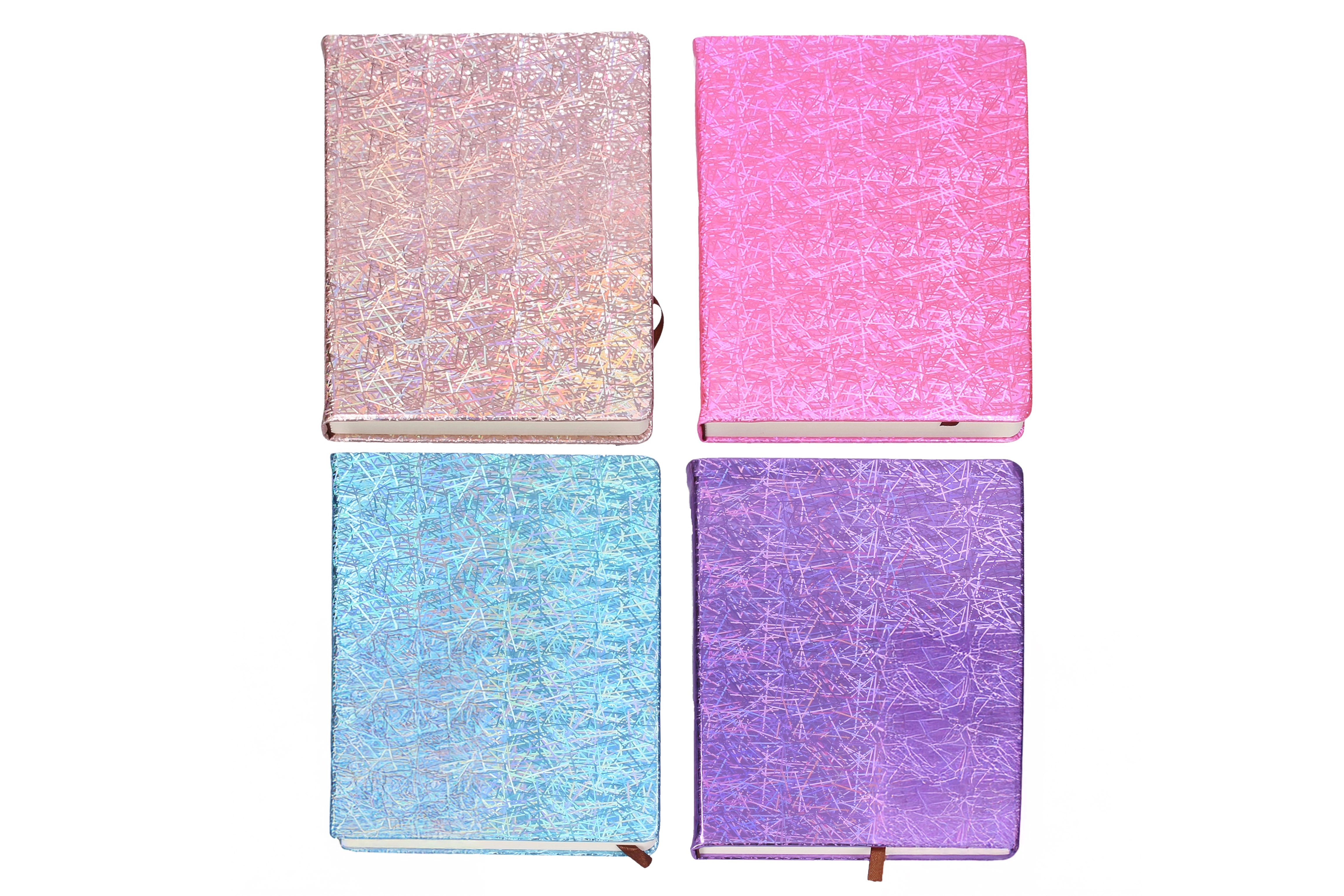 De kleurenmix – paars, zilver, roze en blauw – laat je een variant kiezen die past bij je stemming of stijl. Het notitieboek is geschikt voor school, kantoor en persoonlijk plannen.