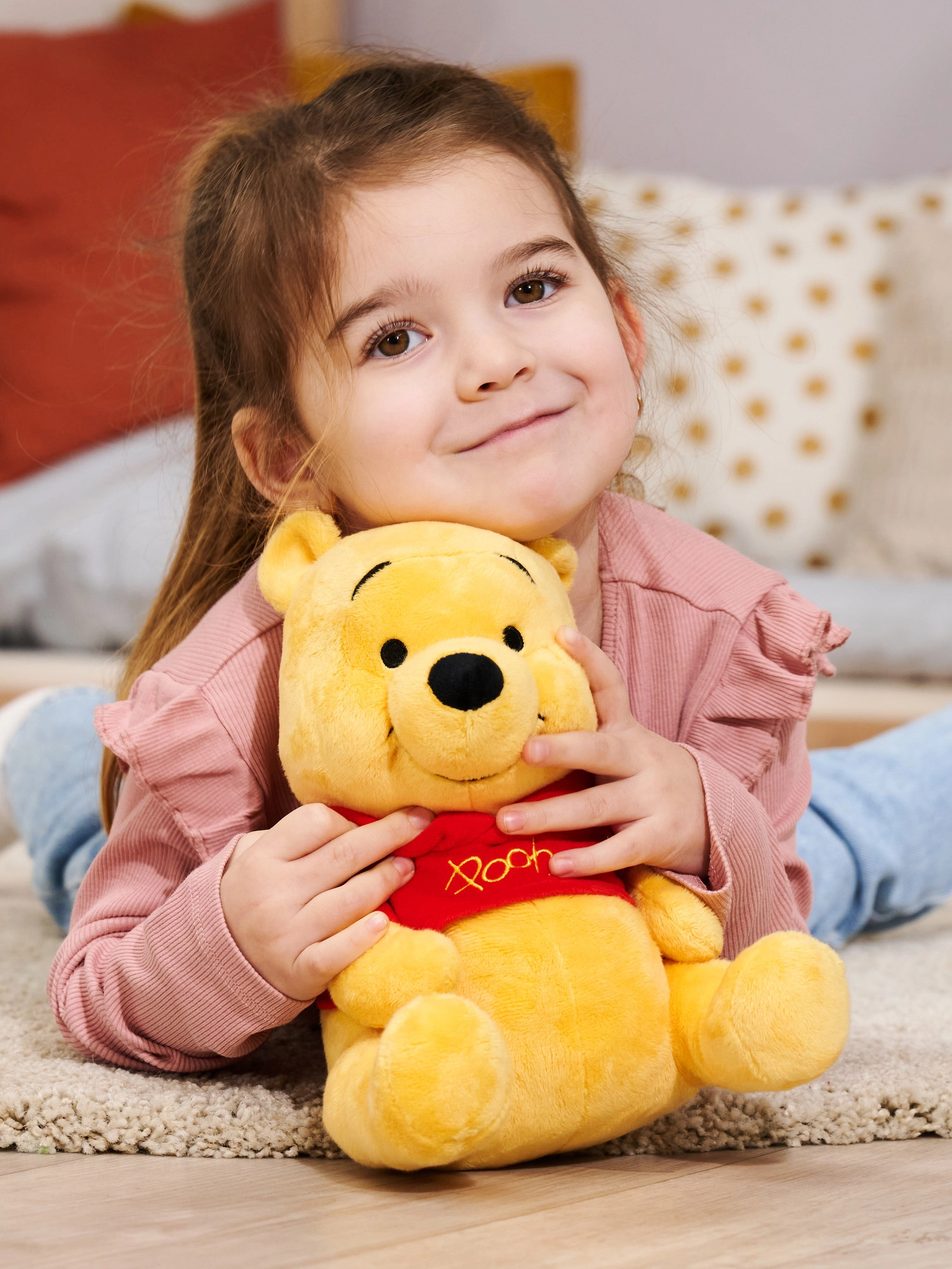 Deze officieel gelicentieerde DISNEY knuffel brengt de geliefde held WINNIE THE POOH in een schattige en knuffelbare uitvoering. Zachte pluche, zorgvuldig stikwerk en veilige geborduurde elementen zorgen voor comfort en een lange levensduur. Dankzij de compacte afmetingen is hij gemakkelijk mee te nemen en past hij in de kinderwagen, rugzak en de kinderkamer.