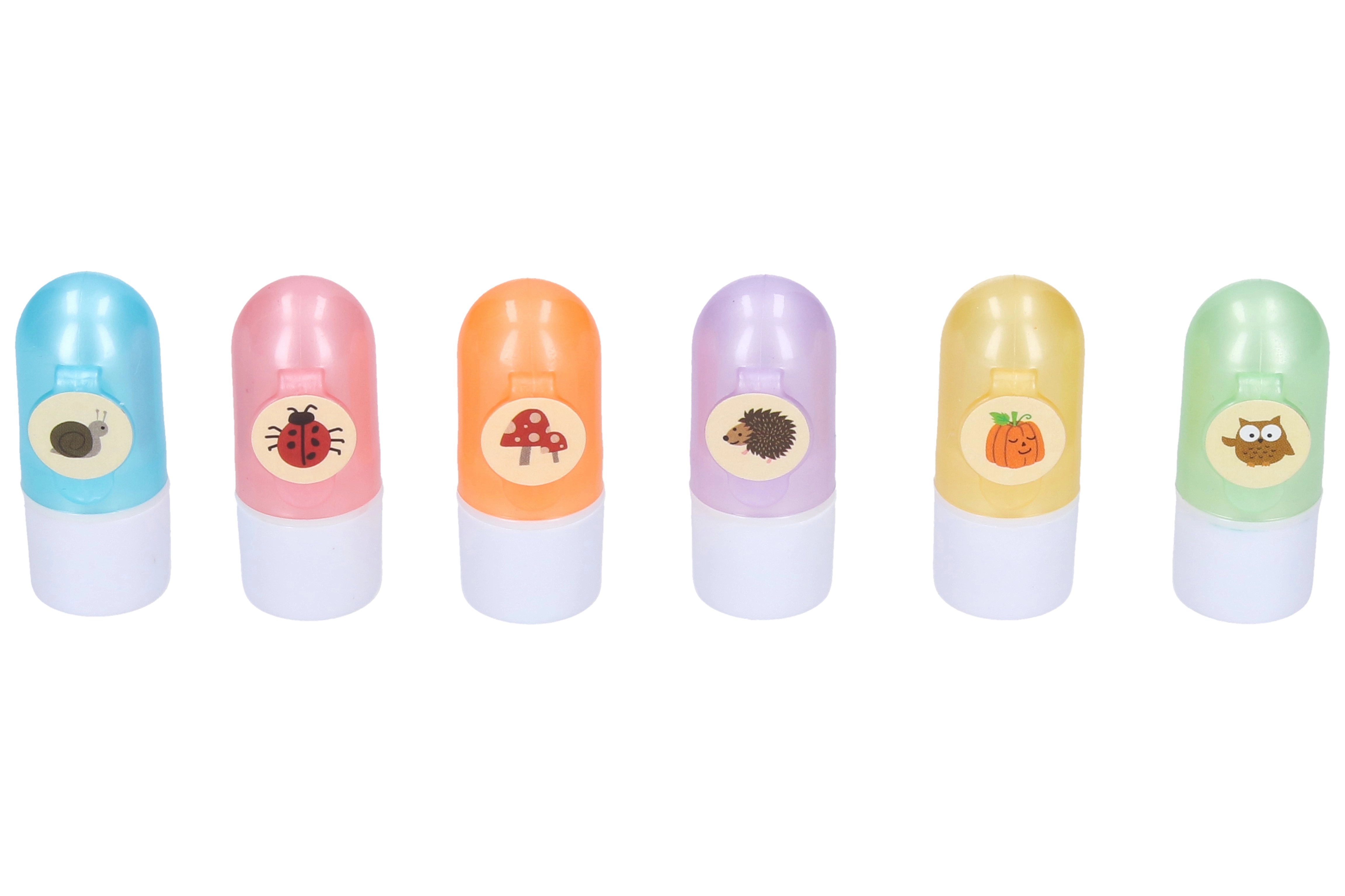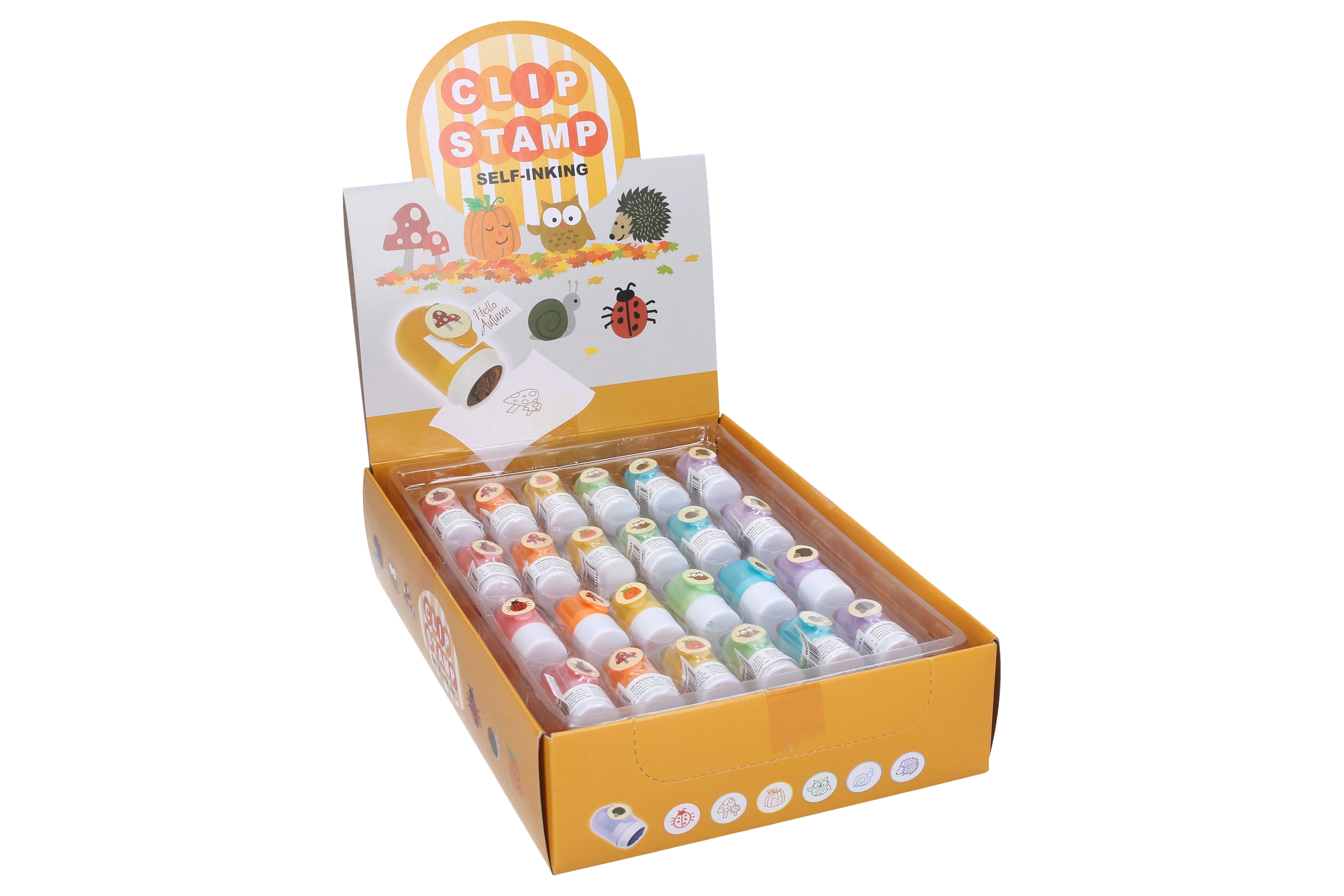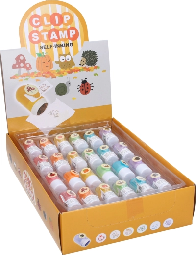 Ontdek de leuke zelfinktende stempels met clip in een speelse mix van motieven, ideaal voor kinderen, knutselen en beloningen. De praktische clip zorgt ervoor dat je de stempel altijd bij de hand hebt, 48 stuks in een displaydoos is perfect voor scholen, kantoren en thuisgebruik. Zes vrolijke varianten: lieveheersbeestje, paddenstoel, pompoen, uil, slak en egel.