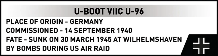 Het model verwijst naar de beroemde onderzeeër U-96, bekend uit het boek en de film DAS BOOT – een samensmelting van geschiedenis en popcultuur in uw collectie.