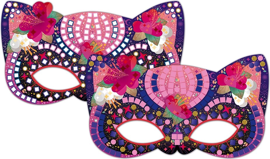 - 6 maskers, 5 vellen zelfklevende foammozaïek (5 kleuren), 6 elastische bindbandjes