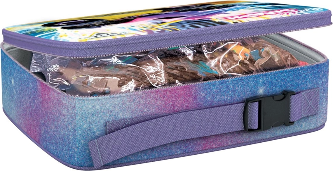 De puzzelstukjes zijn opgeborgen in een stevige, geïsoleerde tas met rits en een zijriem voor gemakkelijk dragen. Houdt de stukjes overzichtelijk bij elkaar, thuis en onderweg.