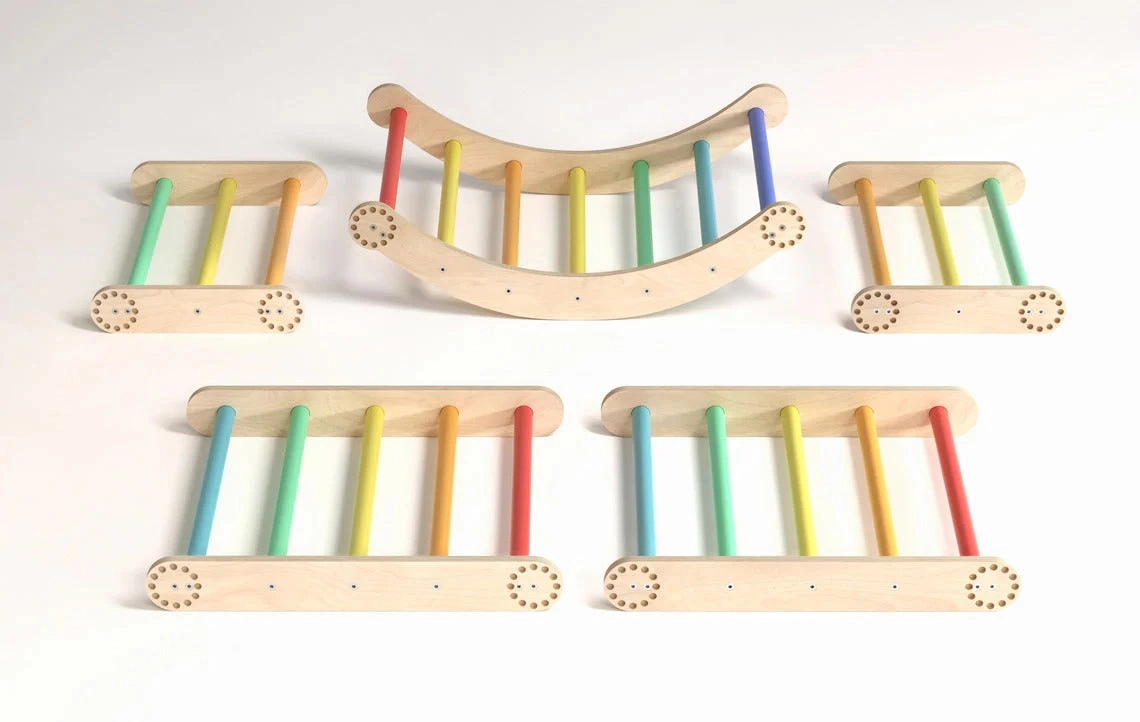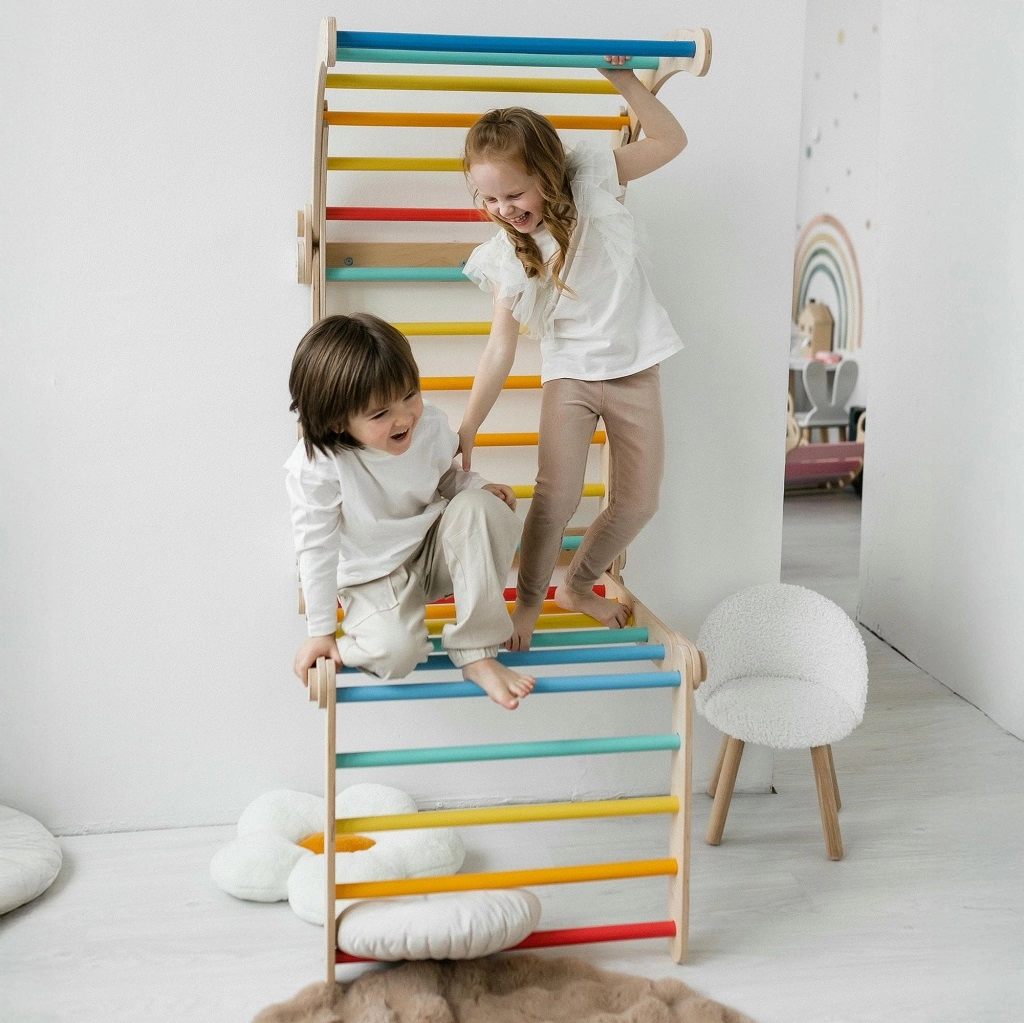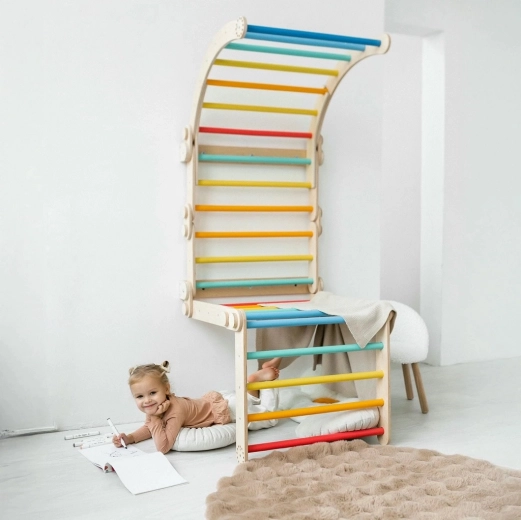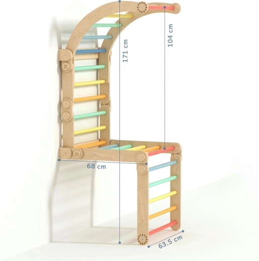De optrekstang en regenboogkleurige sporten stimuleren hangen en klimmen, terwijl de gladde randen en het stabiele frame voor veiligheid zorgen bij elke activiteit.