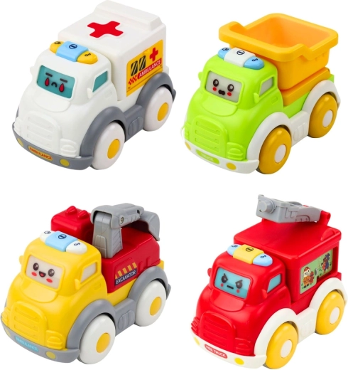 - 4 voertuigen in de set: brandweerauto, bouwvoertuig, kiepwagen en ambulance