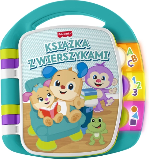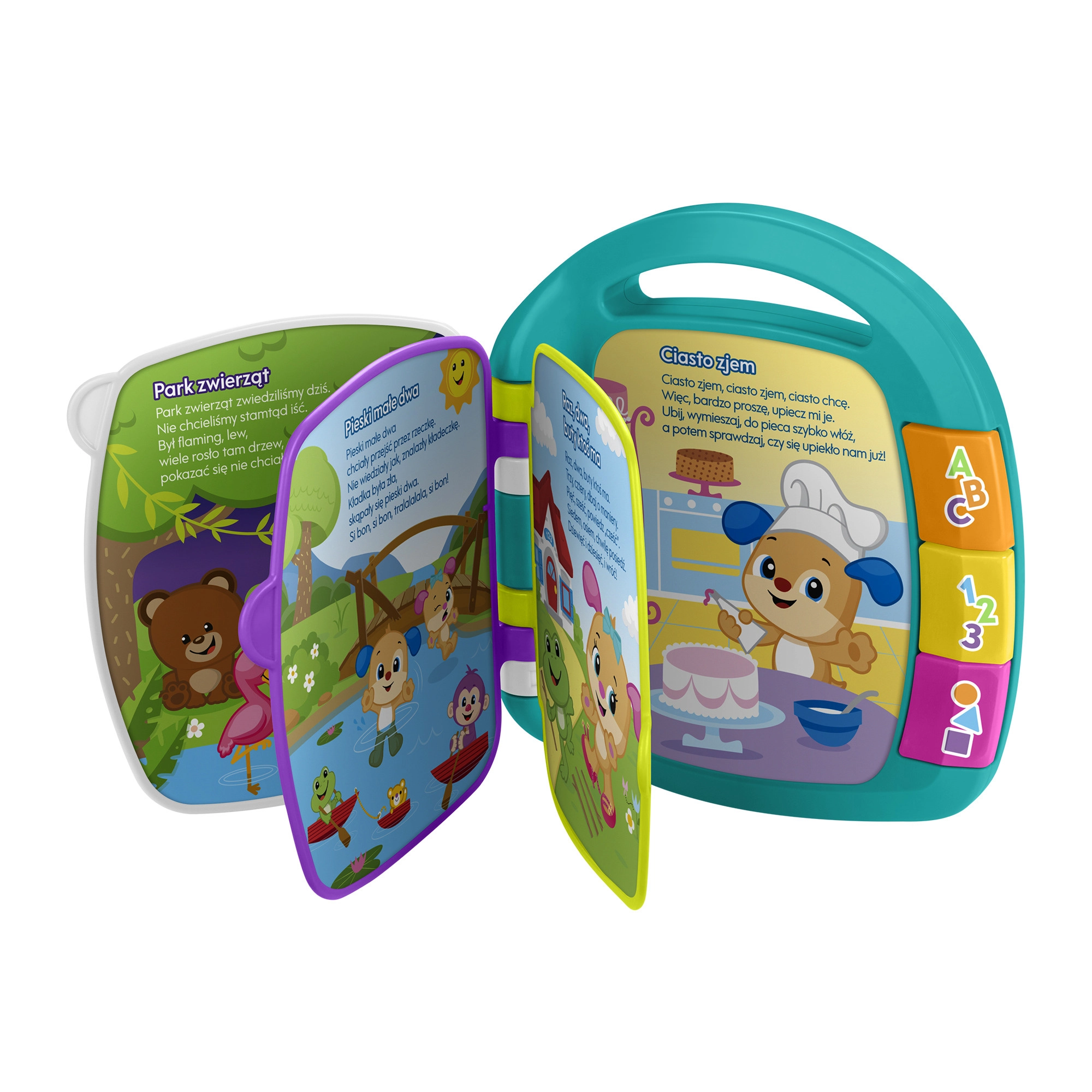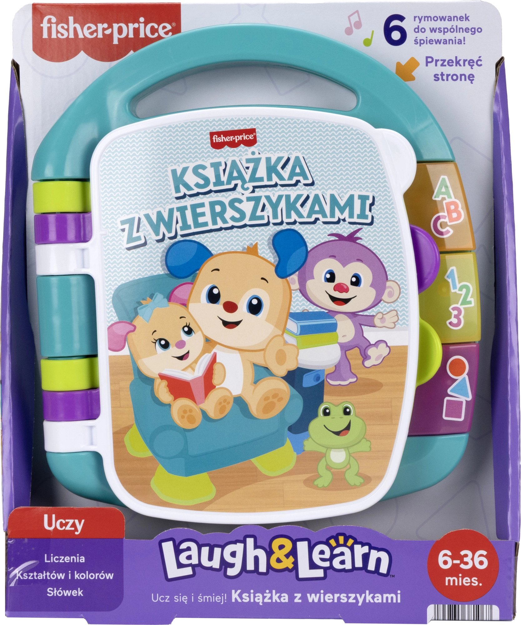 Ontdek een leuke manier van leren met het interactieve educatieve boekje van FISHER-PRICE. Het biedt licht- en geluidseffecten, 6 gereciteerde versjes en 3 functionele knoppen voor het afspelen van liedjes en het leren van woorden, cijfers en vormen. Ideaal voor kinderen van 6 tot 36 maanden, in de Poolse taalversie. Inclusief testbatterijen.