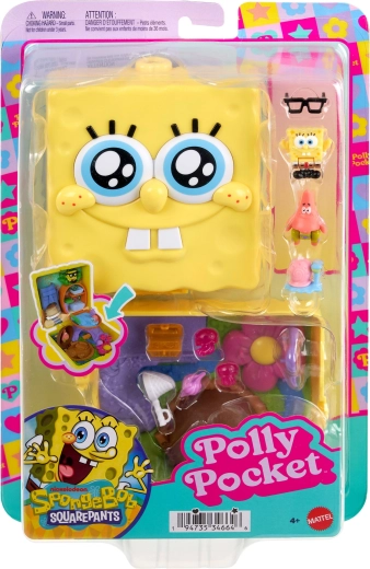 Neem het plezier mee in je broekzak! Deze compacte Polly Pocket-set in SPONGEBOB SQUAREPANTS-thema klapt open tot een gedetailleerde mini-scène van Bikinibroek – met SpongeBobs ananashuis, Patricks stenen huis, het huis van Octo Tentakel en het kwallenveld. Dankzij de afsluitbare case en stevige afwerking is het spel makkelijk mee te nemen en ideaal voor onderweg.