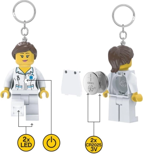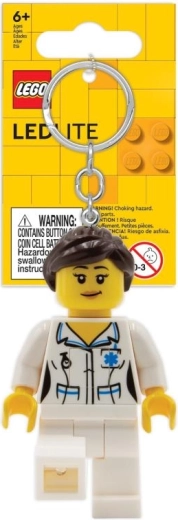 Geef je sleutels of rugzak extra flair met de stijlvolle LEGO sleutelhanger van een verpleegkundige met LED-licht. De authentieke minifiguur met praktische verlichting wordt geactiveerd door op de knop op de borst te drukken en helpt je het sleutelgat in het donker te vinden. Een licht en duurzaam accessoire voor elke dag, ideaal als cadeau voor LEGO-fans.