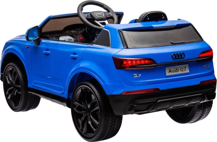 De stijlvolle kinderauto AUDI Q7 combineert een aantrekkelijk design met functies geïnspireerd op het echte model. Het kind bestuurt met pedaal en stuur, terwijl ouders volledige controle hebben dankzij de veilige 2.4G afstandsbediening. Geïntegreerde LED-verlichting, geluidseffecten en de mogelijkheid om favoriete nummers via MP3/USB af te spelen maken elke rit leuk.