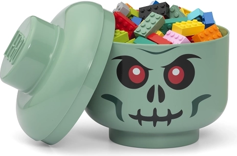 Deze groene LEGO opbergkop (maat S) is ideaal voor het opbergen van LEGO stenen, kleiner speelgoed of snoep. Dankzij de opvallende print van een skeletten gezicht is het zowel een speelse decoratie voor de kinderkamer als een praktische organizer.