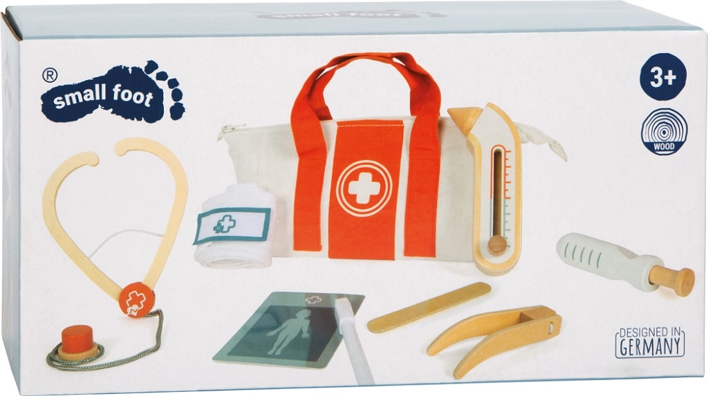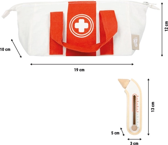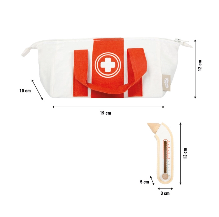 Realistische functies, zoals een inschuifbare spuit en een instelbare thermometer, bevorderen de coördinatie en ondersteunen natuurlijk leren over het lichaam en gezondheid. Hoogwaardige houten en textielen afwerking garandeert een lange levensduur en veilig spel.