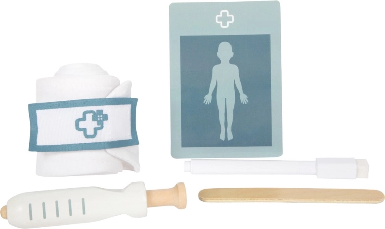 Stethoscoop, thermometer met schuifaanwijzer, spuit, pincet of spatel – veilig, glad en prettig in kinderhanden, ondersteunt de fijne motoriek.