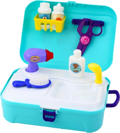 Deze themaset voor kleine dierenliefhebbers combineert plezier en leren. Na het openen verandert de koffer in een mini-verzorgingsstation met overzichtelijke vakken voor alle accessoires. Kinderen kunnen hun pluchen huisdier kammen, föhnen, wassen en verzorgen, terwijl ze verantwoordelijkheid en zorg leren.