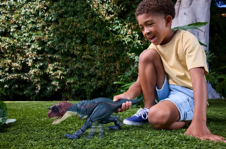 Deze gedetailleerd uitgewerkte figuur uit Jurassic World brengt intense actie naar de kinderkamer. Een innovatief mechanisme geactiveerd door de knop aan de basis van de staart zet de poten in een renhouding, opent de kaken en start krachtige dinosaurusbrullen voor een nog intensere speelervaring. Kenmerkende hoorns, getextureerde huid en filmische details maken het een topstuk voor spel én display.