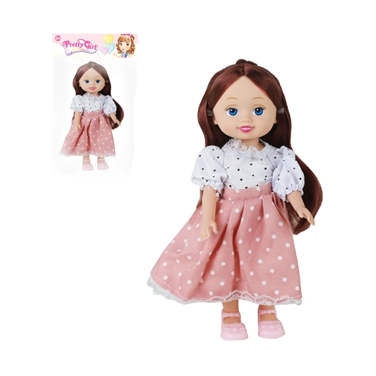 Deze charmante pop in een klassieke jurk met stippen staat klaar om de beste vriendin van elk meisje te worden. Dankzij de compacte hoogte van 25 cm past ze comfortabel in kleine kinderhandjes, een poppenwagen of rugzak, zodat kinderen haar overal mee naartoe kunnen nemen.