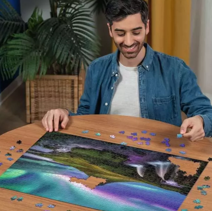 Het motief “Magische nacht op IJsland” toont het Noorderlicht, watervallen en een rivier in adembenemende kleuren. De puzzel met 1000 stukjes is een ideale keuze voor gevorderden en vaardige beginners die op zoek zijn naar ontspannend plezier én een mentale uitdaging.
